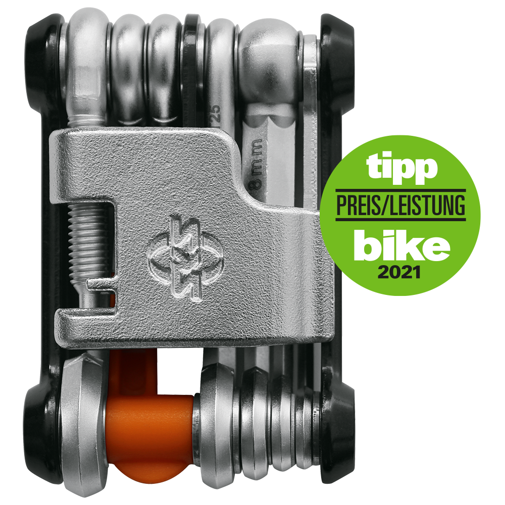 A miniferramenta compacta e bem projetada feita de aço inoxidável cromo vanádio combina as funções mais importantes da ferramenta para que pequenas reparações possam ser realizadas na tua bicicleta quando você estiver fora de casa.