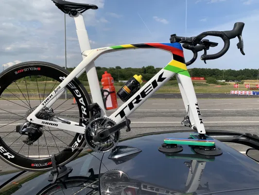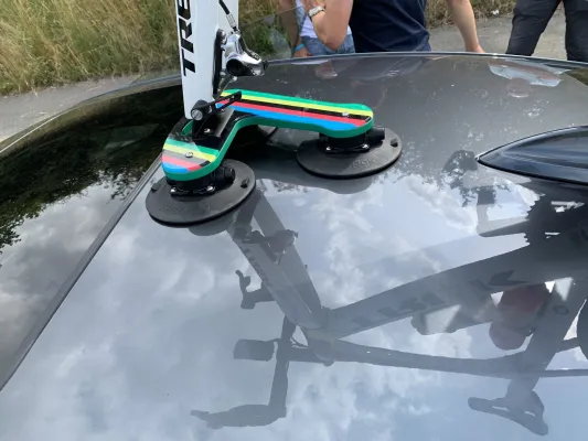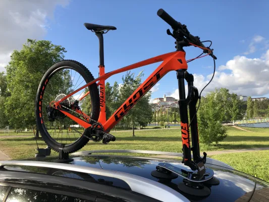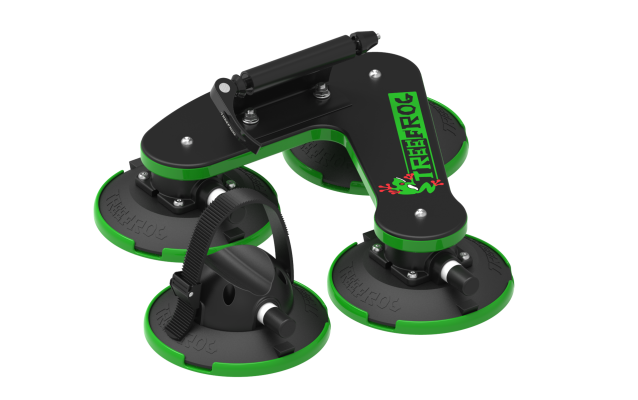 O porta-bicicletas TreeFrog Pro 1, é um suporte de tejadilho de camada dupla que apresenta uma forma única de figura 7, colocando as ventosas num triângulo perfeito para uma capacidade de retenção máxima. Suporta 1 bicicleta (até 20 kg). Nada de e-bike!!! A plataforma de policarbonato de camada dupla Pro 1 tem 3 ventosas TreeFrog, cada uma com capacidade para 110 kg, um suporte de forquilha universal de 9-15×100 mm e um forte suporte de roda traseira com cinta de escada. O suporte de forqueta universal de 9-15x100mm suporta de forma segura uma forqueta de libertação rápida de 9mm ou uma forqueta de 15x100mm (com o nosso espaçador Boost funciona com uma bicicleta de montanha de 15x110mm), sem necessidade de trocar os suportes de forqueta! A série Pro está disponível com diferentes tamanhos de montagem de forquilha de eixo passante de 12 mm, 15 mm e 20 mm (incluindo a forquilha Lefty) sem custos adicionais. É uma excelente escolha para qualquer carro, e até cabe numa mochila, por isso é fácil viajar com ele, e é uma excelente escolha para usar em carros de aluguer e pode ser montado no tejadilho, porta-bagagens ou janela traseira.