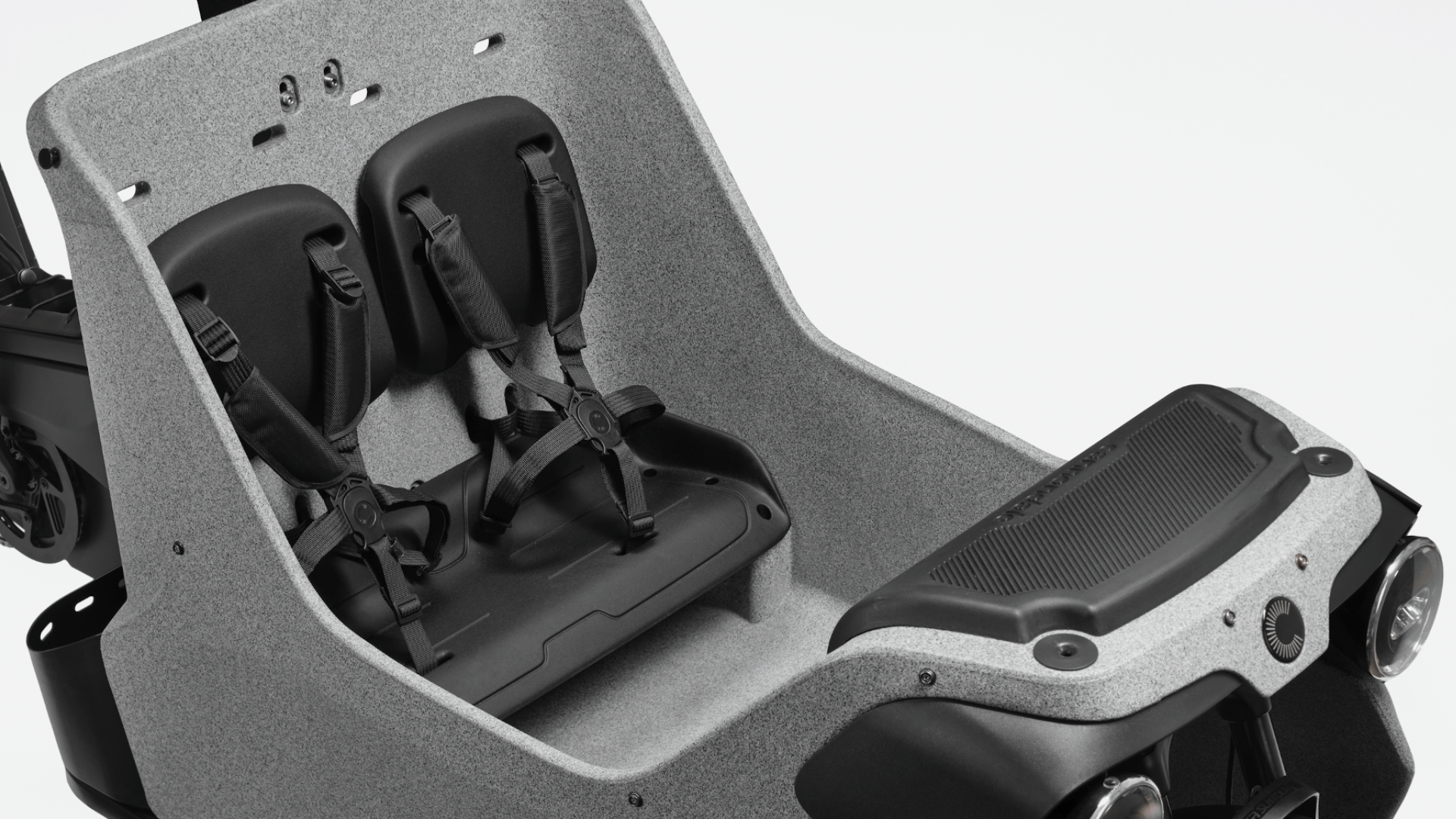 A Canondale Wonderwagen Neo oferece às crianças o melhor lugar na rua. A cabina espaçosa inclui dois bancos confortáveis, com cintos de segurança de cinco pontos e apoios de cabeça ajustáveis, e laterais que envolvem os ocupantes para maior conforto e proteção. E o porta-bagagens traseiro adapta-se facilmente a um assento aprovado para um terceiro sortudo.
