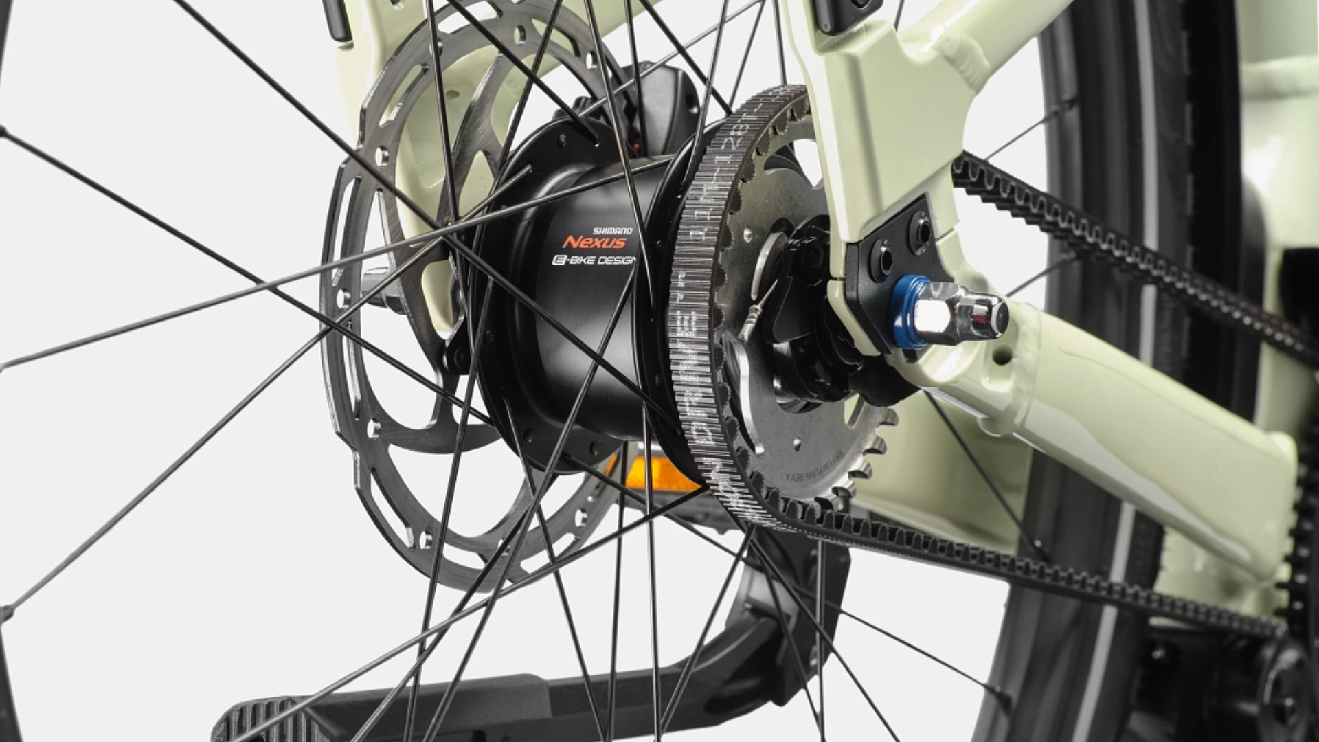 • Mudanças limpas, silenciosas e fiáveis do cubo de 5 velocidades Shimano Nexus e da correia de transmissão Gates CDX Carbon