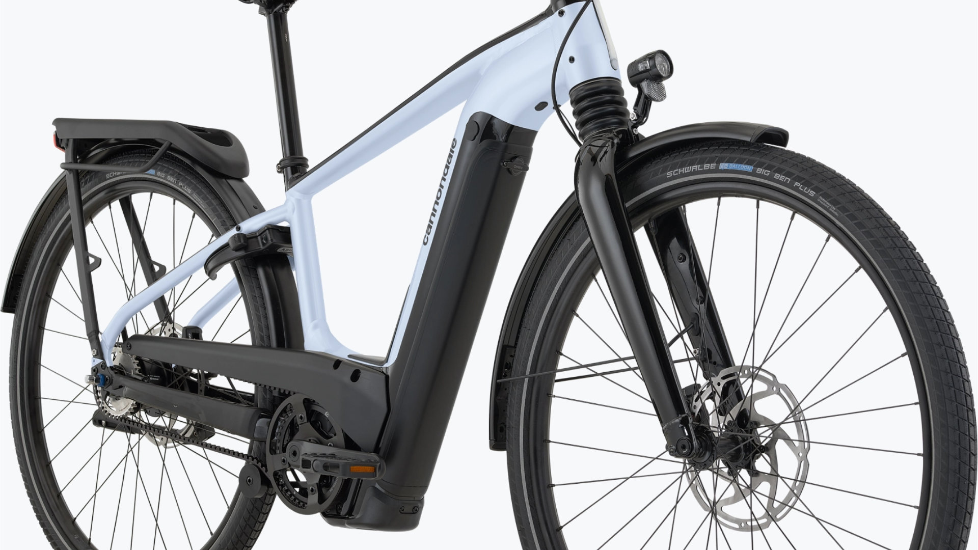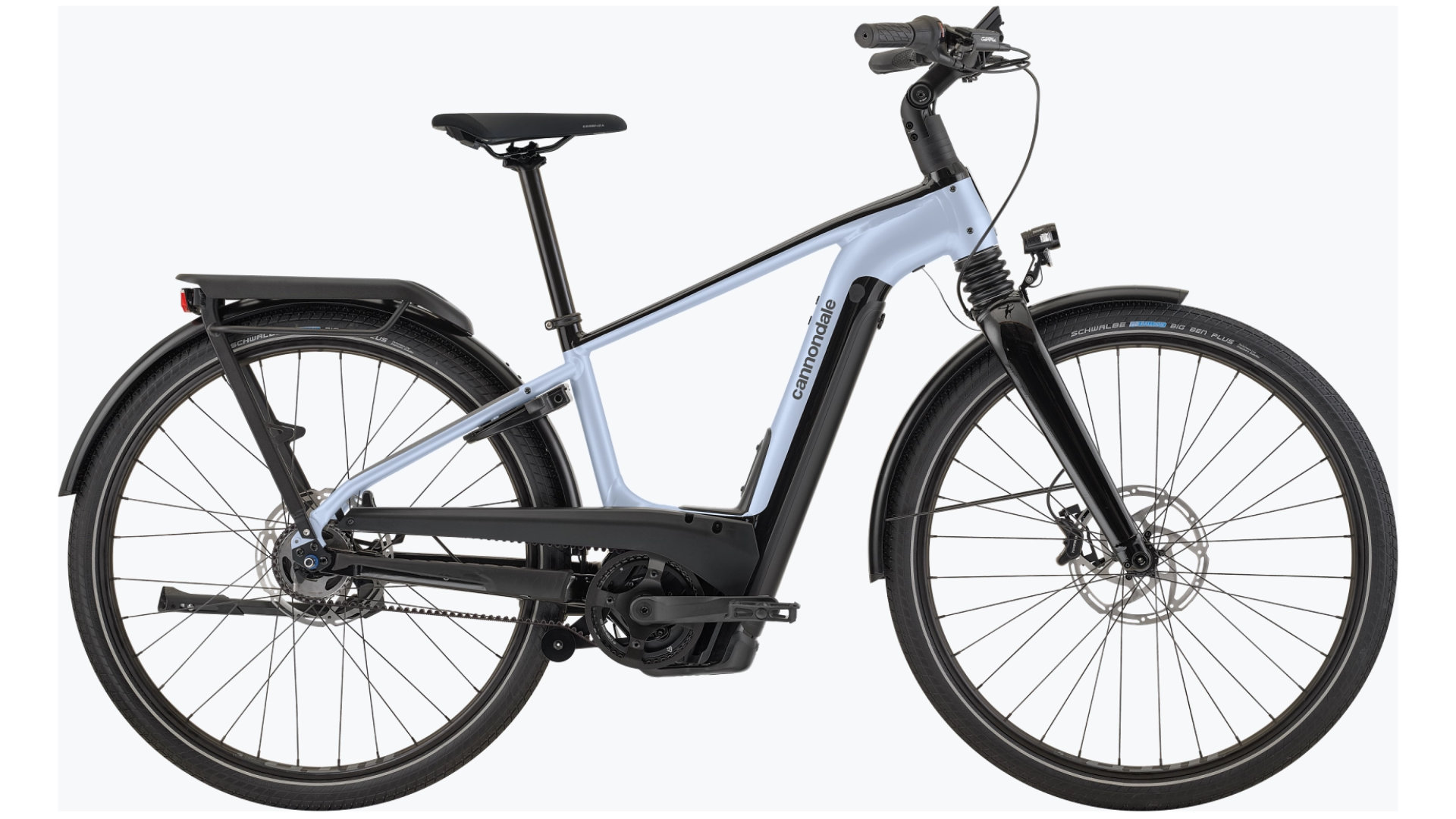 Luz de marcha integrada no tubo da cabeça, farol dianteiro Axa Blueline 30, farol traseiro Axa Blueline, fechadura Abus (chave combinada com a fechadura da bateria), porta-bagagens traseiro Cannondale Urban (25kg, compatível com Racktime), guarda-lamas de cobertura total