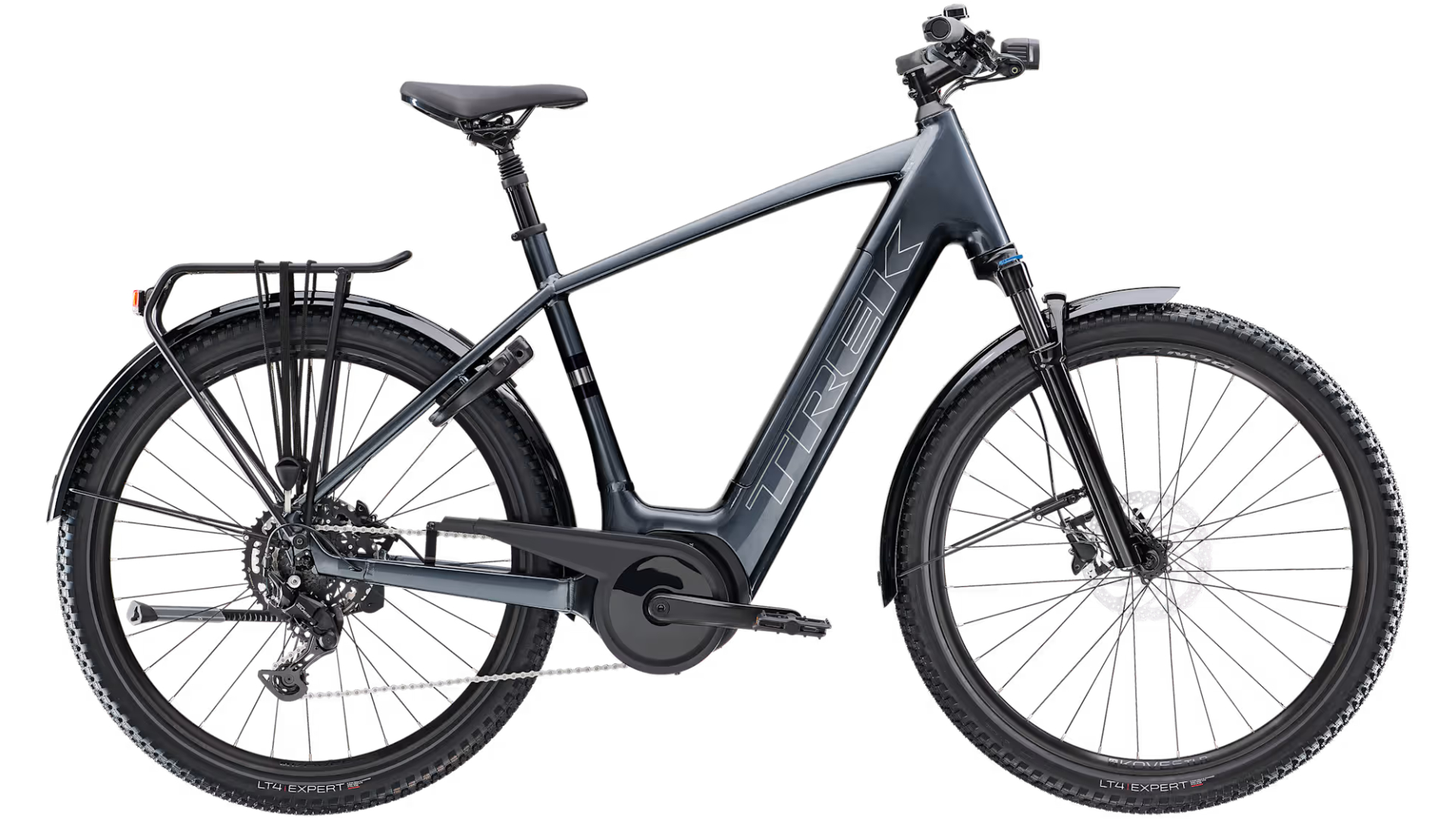 A Trek Verve+ 4 é uma bicicleta híbrida elétrica perfeita para os ciclistas que querem pedalar até mais longe e divertir-se nas ligações diárias, nos passeios recreativos e quando estão a fazer exercício. É tão robusta quanto elegante e dispõe de um potente motor Bosch com integração de sistema inteligente e quatro opções de capacidades de bateria à tua escolha, que vão dos 400Wh aos 800Wh. Esta bicicleta elétrica vem com componentes que privilegiam o conforto e a segurança, como a forqueta e o espigão de selim com suspensão, pneus largos e estáveis e luzes integradas.
