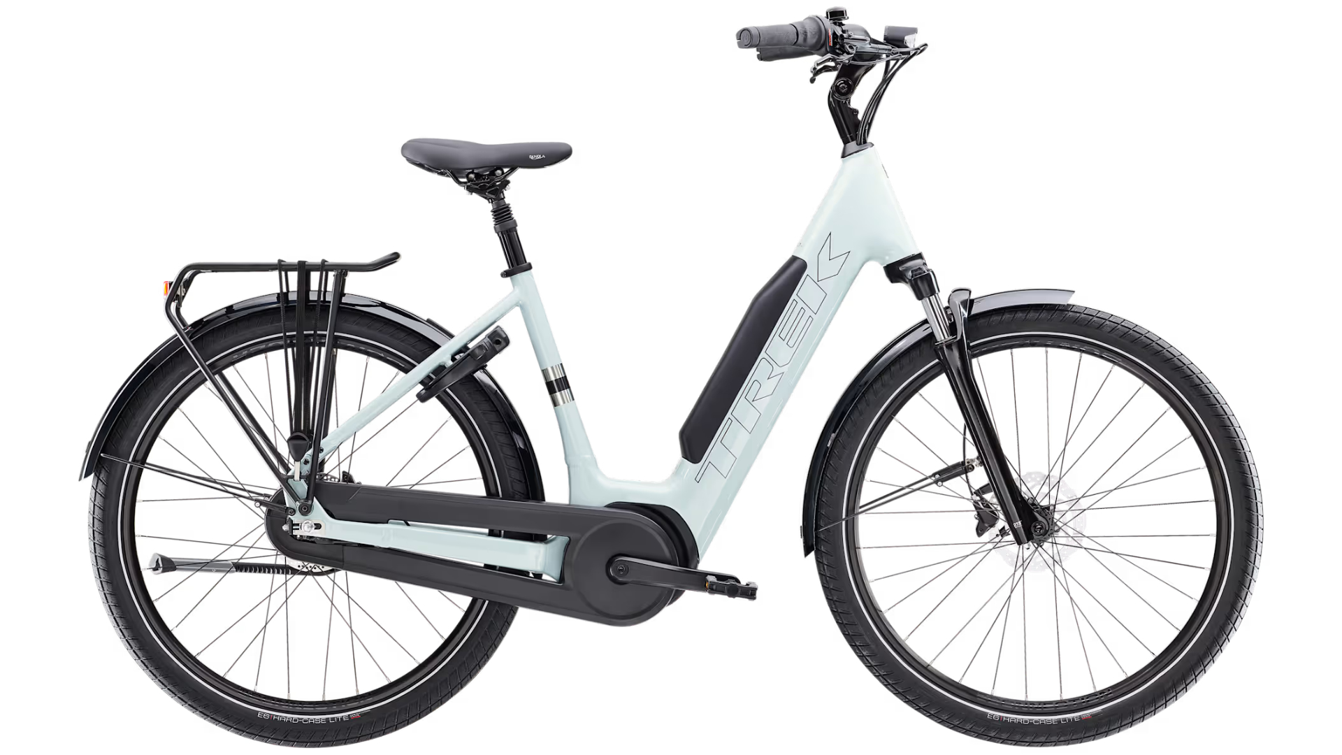 A Trek District+ 3 Lowstep é uma bicicleta elétrica confortável e fiável que faz com que pedalar pela cidade seja simples, rápido e divertido. Dispõe de um sistema de mudanças internas de baixa manutenção, de um motor e controlador Bosch e de um quadro que integra as baterias dentro do tubo inferior, disponível nas opções de 400Wh a 800Wh. Além disso, vem equipada com suspensão que suaviza a estrada e com todas as funcionalidades utilitárias necessárias, como guarda-lamas, luzes integradas e um porta-bagagens traseiro compatível com MIK.