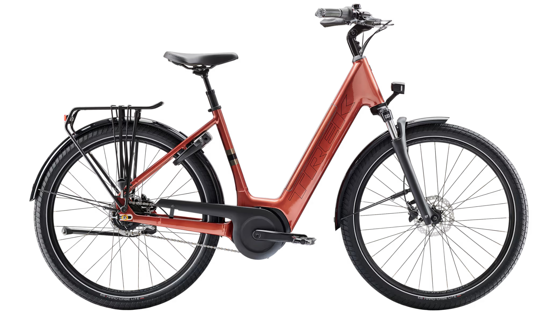Para quem se desloca diariamente na cidade, a Trek District+ 4 Lowstep é a escolha óbvia. O motor Bosch integrado e a bateria PowerPack oferecem grande capacidade de assistência. Os porta-bagagens e luzes incluídos fazem deste um pacote completo para qualquer volta. Além disso, o quadro com design low-step e travão contra-pedal fazem com que seja tão fácil pedalar como montar e desmontar da bicicleta.