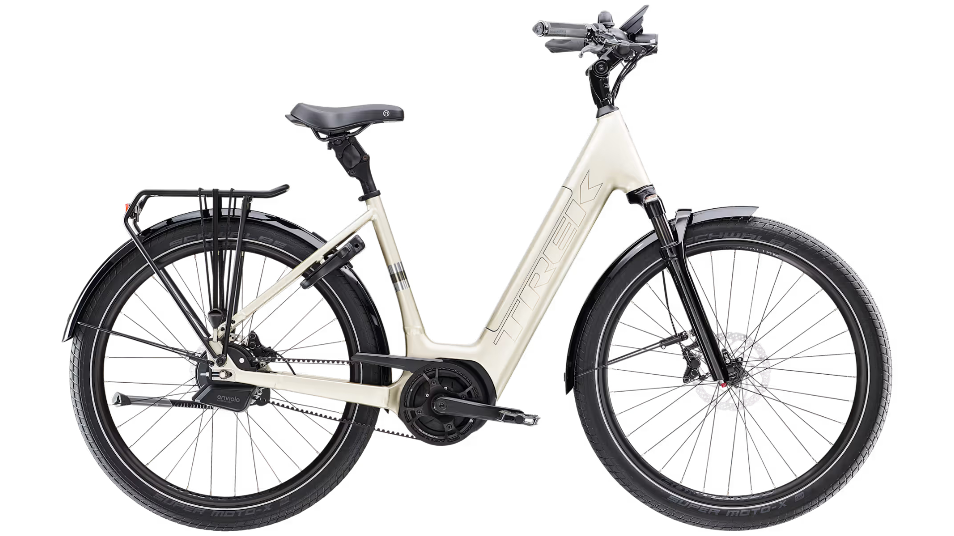 A Trek District+ 5 Lowstep é uma robusta bicicleta elétrica urbana repleta de conforto e funcionalidades que simplificam as tuas voltas na cidade. O seu quadro integra a bateria no tubo inferior e está disponível numa gama variada de capacidades, que vão de 400 a 800Wh, de forma a que possas escolher a opção certa para a tua deslocação urbana. O motor Bosch impele-te e proporciona conectividade inteligente. A durável correia de transmissão reduz a necessidade de manutenção, e o cubo Enviolo AUTOMATIQ faz a engrenagem automática das mudanças por ti.