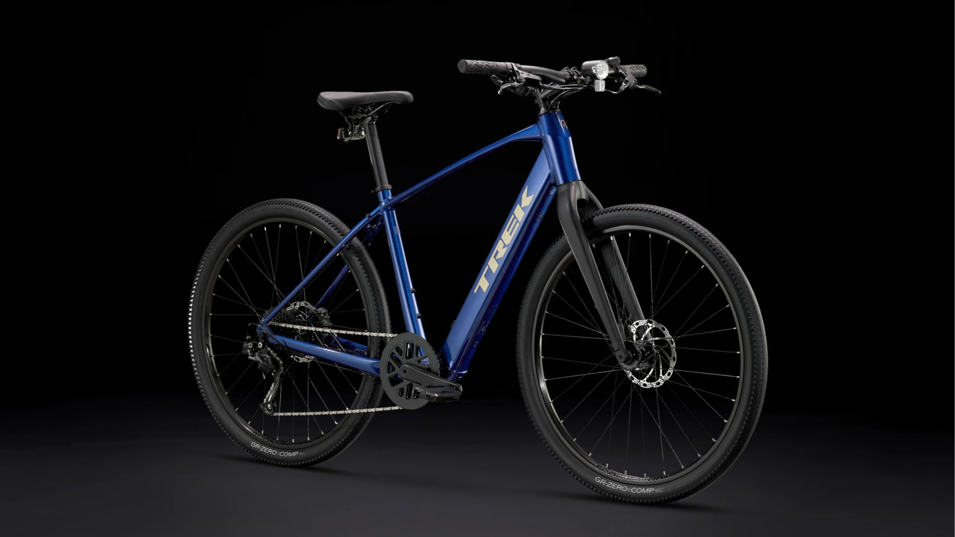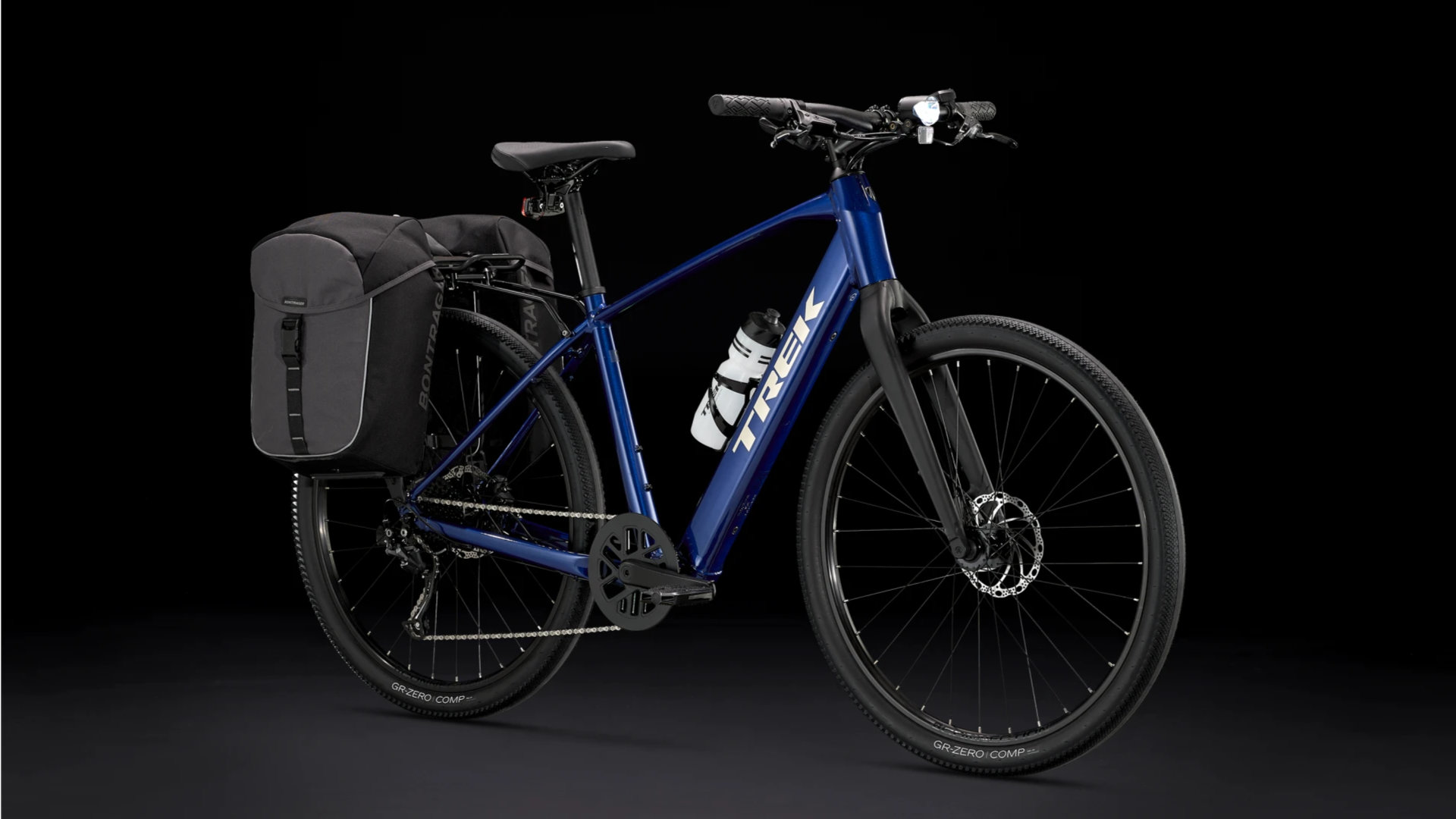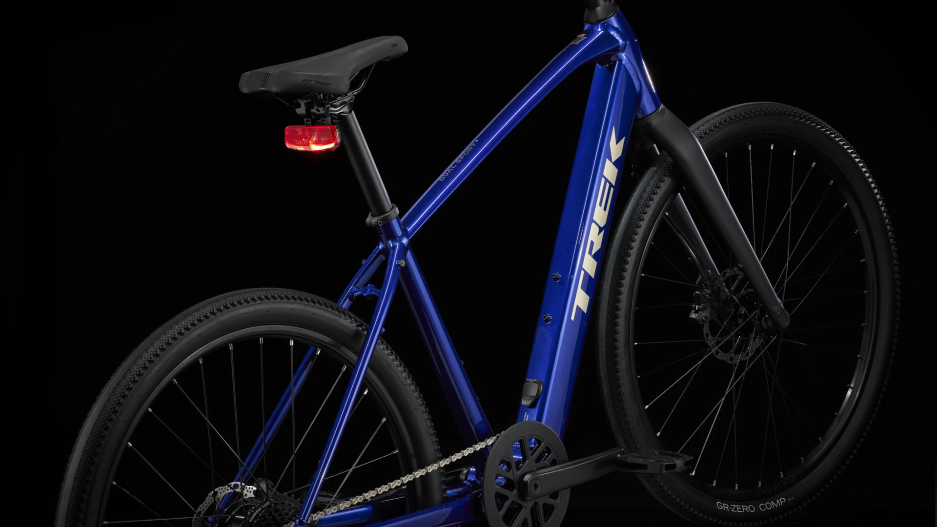 Quadro e forqueta leves em alumínio, sistema de pedalada assistida patenteado pela Trek com motor de cubo (250 W, 40 Nm) que assiste até aos 25 km/h e uma bateria de 250 Wh para uma autonomia de até 55 km por carregamento. Além disso, tem rodas de 650b resistentes e pneus de 50c largos para capacidade e conforto em diversos terrenos, uma fiável transmissão Shimano de 9 velocidades, travões de discos hidráulicos, luzes integradas alimentadas pela bateria e um descanso.