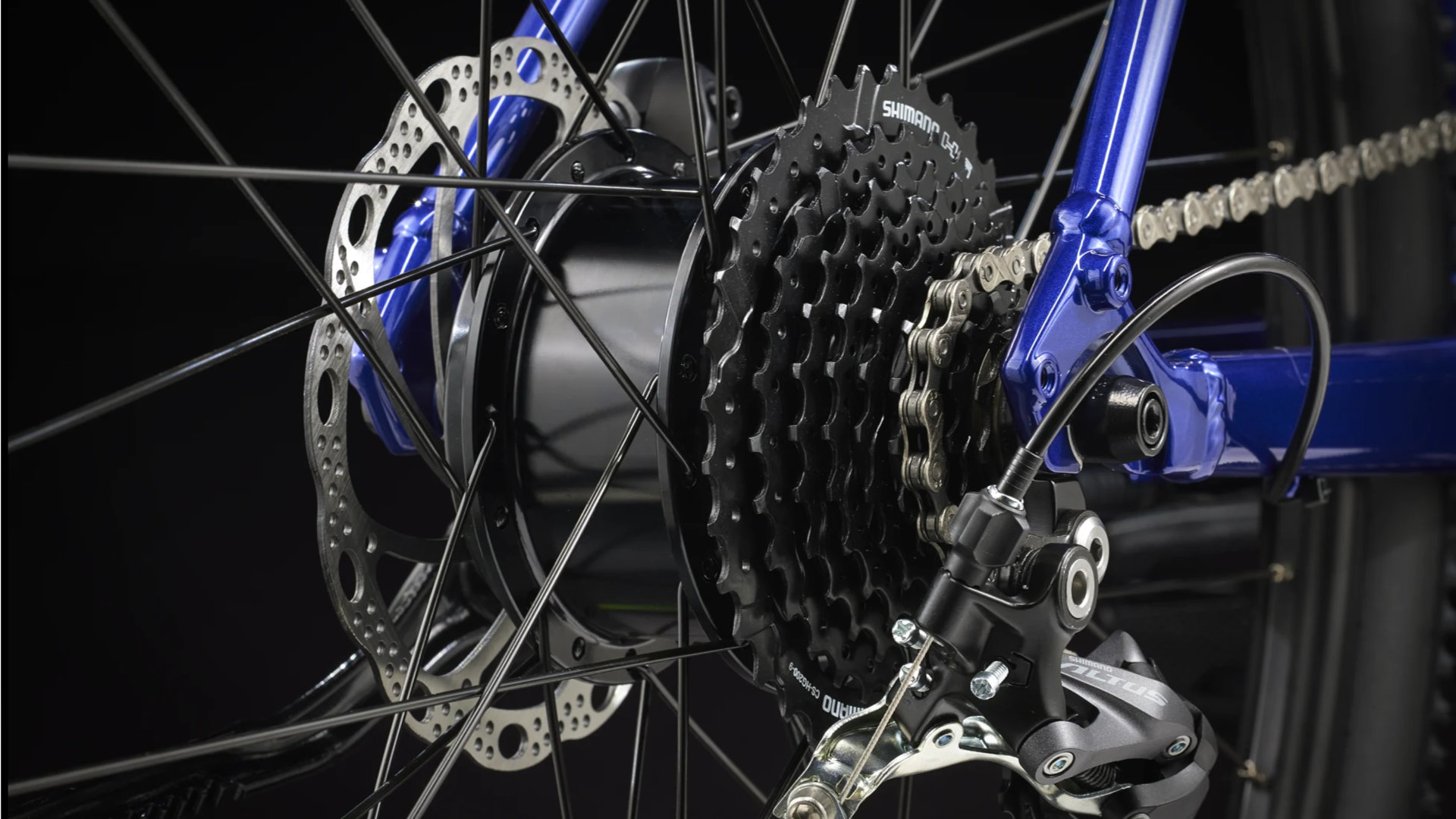 Lightweight aluminum frame and fork, Trek’s patented assisted pedaling system with hub motor (250 W, 40 Nm) that assists up to 25 km/h and a 250 Wh battery for a range of up to 55 km per charge. Plus, it has tough 650b wheels and wide 50c tires for capability and comfort on a variety of terrains, a reliable 9-speed Shimano drivetrain, hydraulic disc brakes, integrated battery-powered lights, and a kickstand.