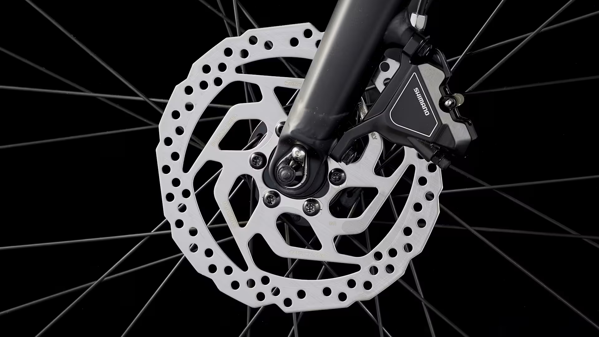 Shimano, disco hidráulicos, Shimano, manete MT200, pinça UR300. Rotores Shimano RT26, 6 parafusos, 160 mm.