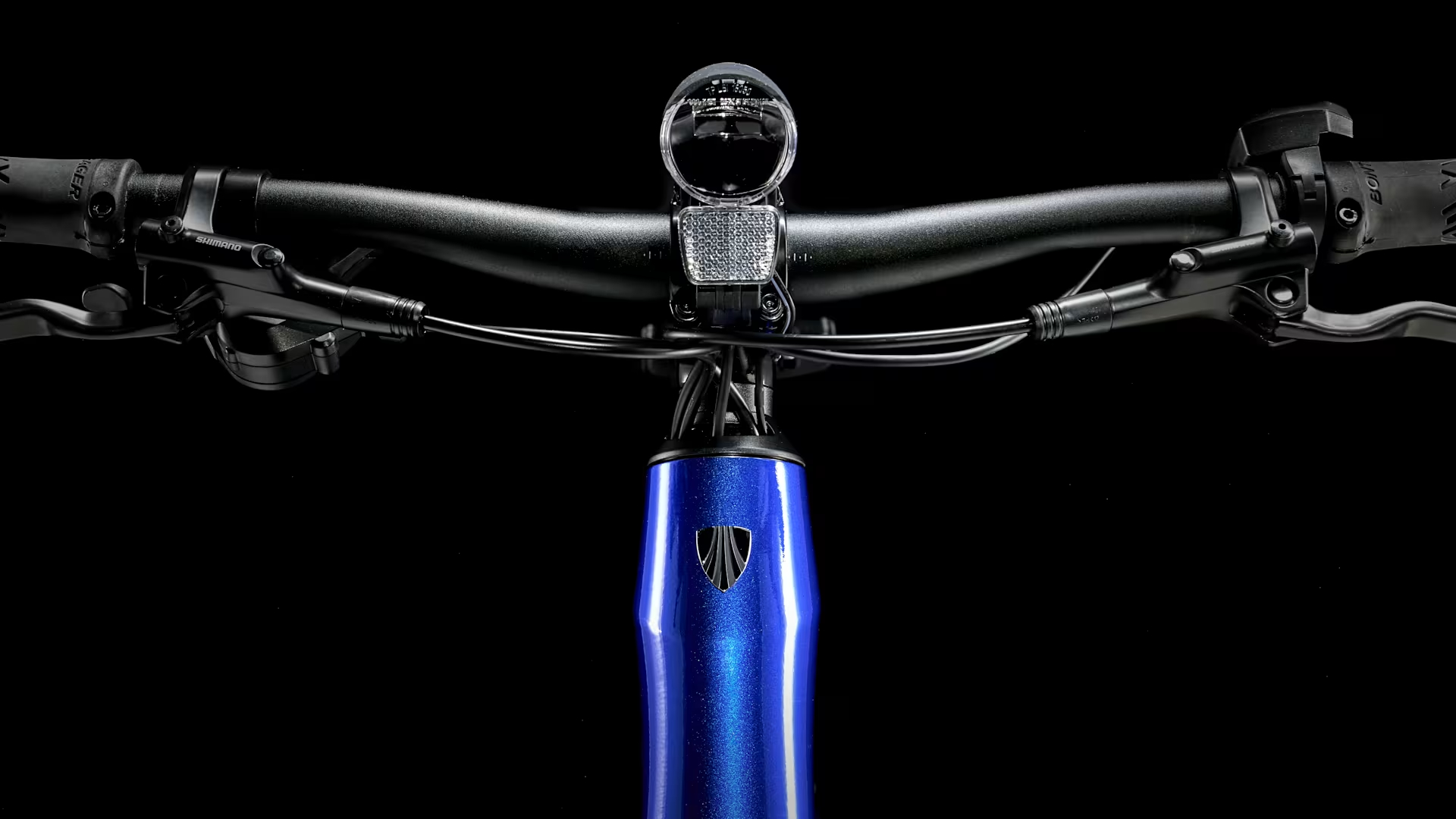 Selim Bontrager Sport. Espigão Bontrager alumínio, 31.6mm, offset de 12mm, comprimento de 400mm. Guiador Bontrager de alumínio, 31.8 mm, elevação de 15 mm, largura de 690 mm. Punhos Bontrager XR Endurance Comp, de encaixe. Avanço Bontrager Comp, 31.8 mm, compatível com Blendr, 7 graus, comprimento de 100 mm.