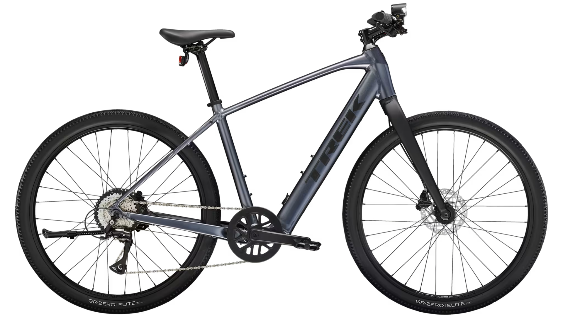 A Trek Dual Sport+ 2 LT é uma bicicleta híbrida elétrica leve e eficaz concebida para aventuras em piso alcatroado e trilhos suaves. Tem um sistema de pedalada assistida intuitivo e natural para tornar ainda mais entusiasmante explorar o que está à tua volta e facilitar as subidas. Além disso, tem rodas resistentes e pneus largos que te dão confiança em diversos terrenos.