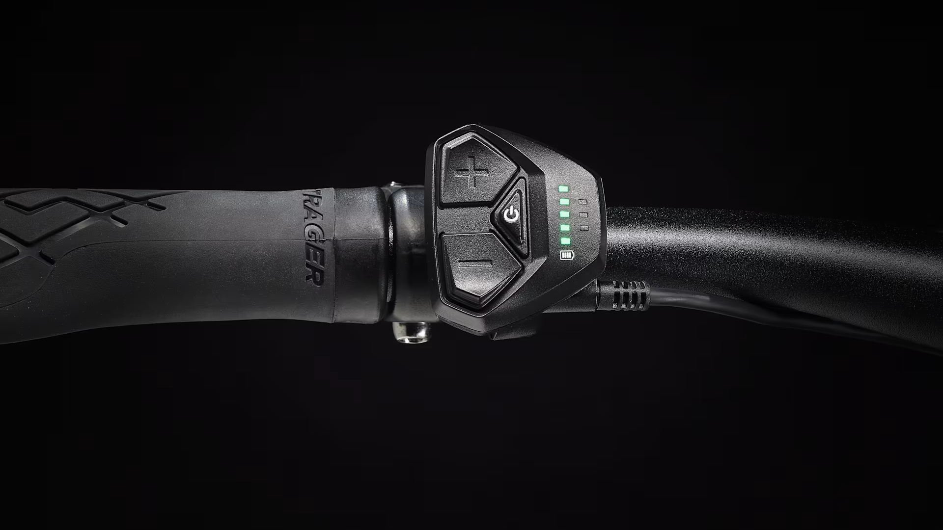 Bontrager Connection, parede dupla, 32 furos, largura de 20 mm, válvula Presta. Raios 14g aço inoxidável, pretos. Cubos, alumínio, 6 parafusos (F) Formula DC-20, aperto rápido 5x100 mm / (T) Motor de cubo Hyena, 40Nm, 250W. Pneus Bontrager GR0 Comp, talão em arame, 60 tpi, 650x50 mm.