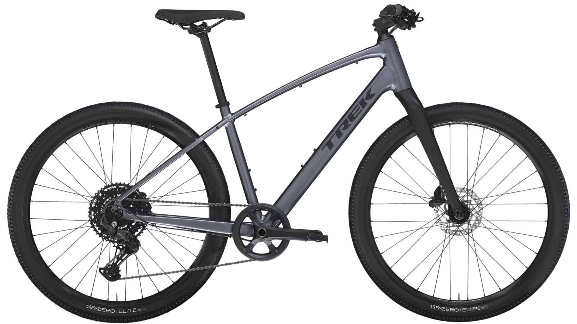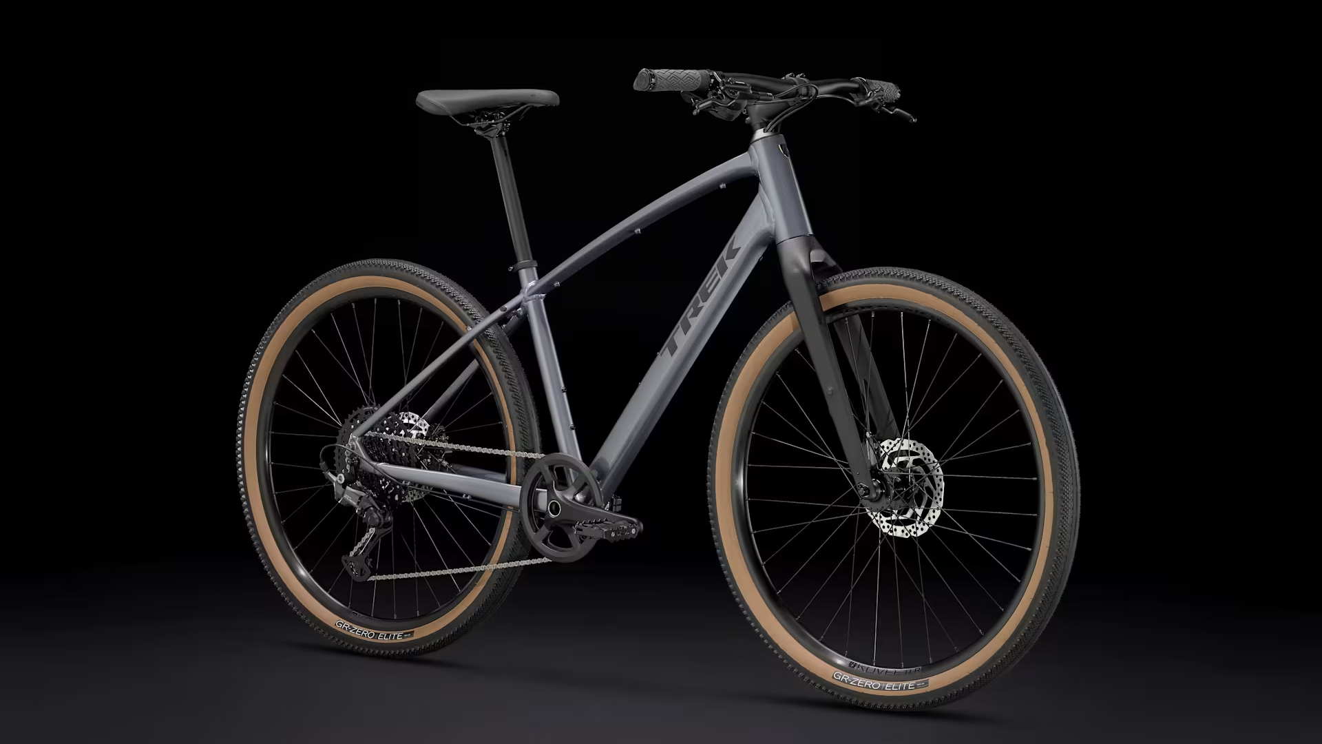 A Trek Dual Sport 3 é uma bicicleta híbrida de alto desempenho para ir a todo o lado, que faz a transição de piso alcatroado para terrenos mais duros com facilidade. Tem um quadro leve e uma transmissão Shimano CUES 1x simples e com uma ampla relação de mudanças. As suas rodas Bontrager Kovee e pneus largos de gravel amortecem os impactos e terrenos duros para uma condução confortável e confiante em piso alcatroado, trilhos suaves e caminhos de terra batida ligeiros.