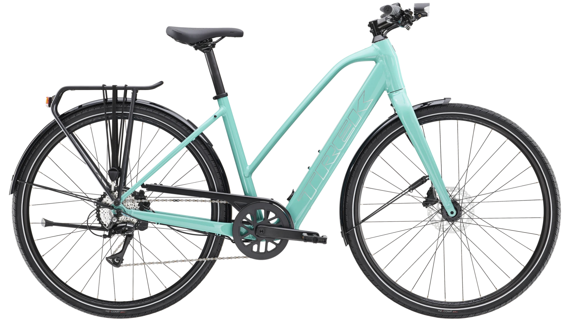 Quadro e forqueta leves em alumínio, sistema de pedalada assistida patenteado pela Trek da Hyena com motor de cubo (250 W, 40 Nm) que assiste até aos 25 km/h e uma bateria de 250 Wh para uma autonomia de até 55 km por carregamento. Além disso, tem rodas de 700c rápidas, pneus 40c de rolamento rápido estáveis com paredes laterais refletoras, uma fiável transmissão Shimano de 8 velocidades, travões de disco hidráulicos, luzes integradas alimentadas pela bateria, porta-bagagens traseiro compatível com MIK, guarda-lamas e descanso.