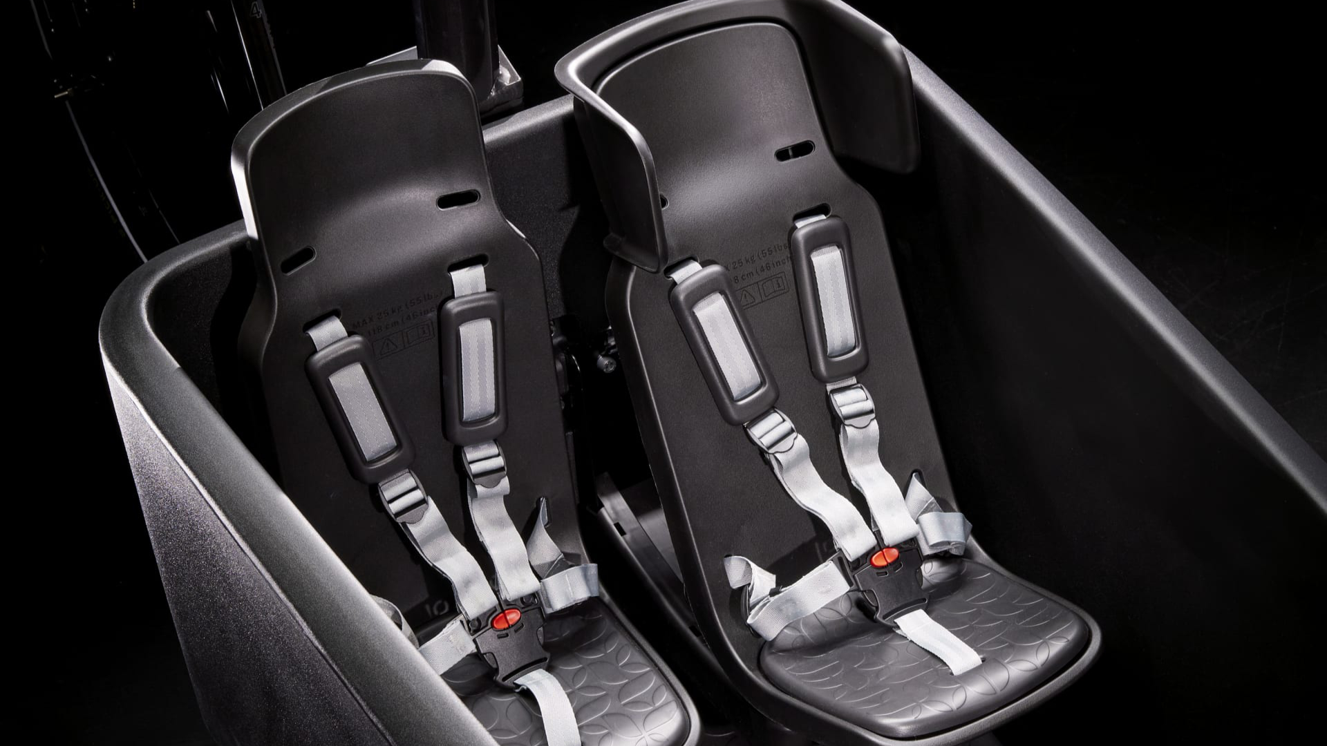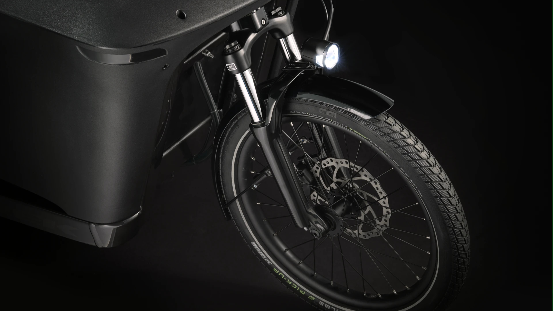 Um robusto quadro em alumínio com uma caixa dianteira configurável com banco e dois assentos de criança. Motor Bosch Performance Line Cargo (250W, 85Nm) para assistência até 25km/h com uma bateria de 750Wh. Comando para smartphone com carregamento sem fios. Correia de transmissão Gates CDX de baixa manutenção com um cubo CVT para uma engrenagem de mudanças perfeita. Suspensão dianteira, travões hidráulicos de 4 pistões, um espigão telescópico ajustável, porta-bagagens traseiro MIK HD, um descanso estável e o sistema de proteção anti-roubo BCM da Bosch