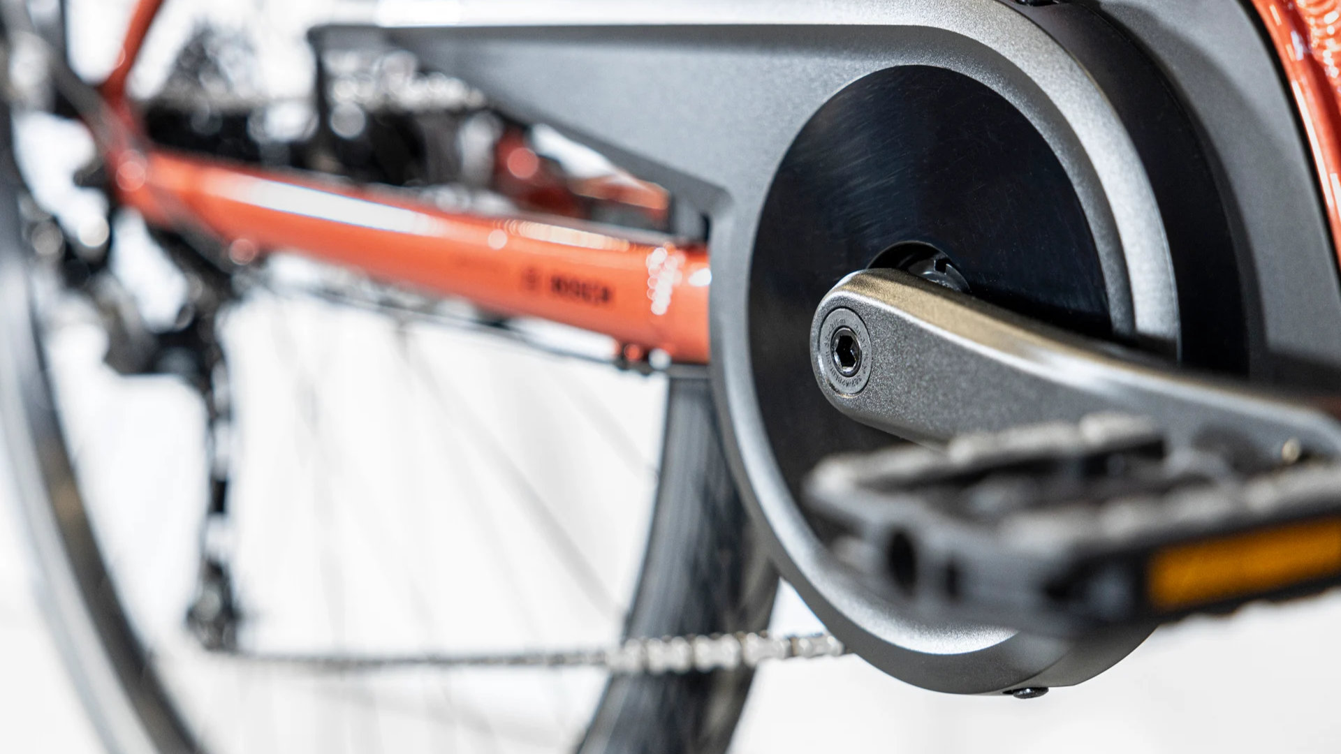 Um quadro leve em alumínio com geometria lowstep, uma transmissão Shimano de 8 velocidades e um motor Bosch Active Line (250 W, 40 Nm) que atinge velocidades até 25 km/h, um controlador Purion e uma bateria de 300 Wh, 400 Wh ou 500 Wh à tua escolha. Mais, uma suspensão dianteira, travões de disco hidráulicos, um avanço ajustável e compatível com Blendr, pneus 50c extra largos para estabilidade e tração, punhos ergonómicos, guarda-lamas, luzes, um porta-bagagens traseiro compatível com MIK e um cadeado.