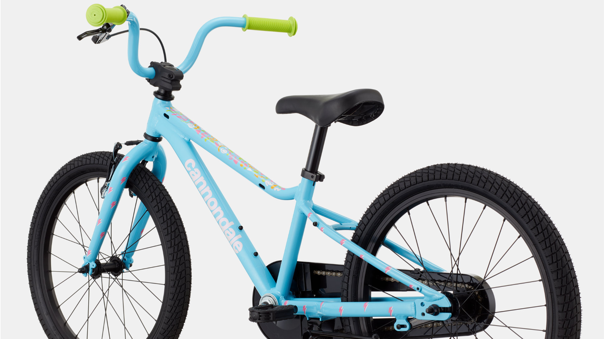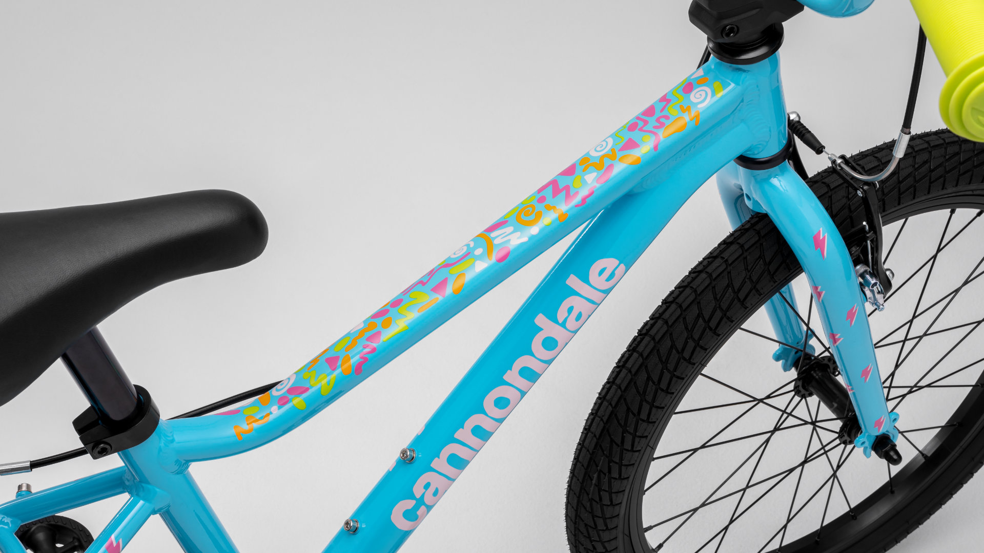 Com rodas de 20” e engrenagens fáceis de pedalar, a Cannondale Kids Trail foi feita para ganhar velocidade e confiança em todo o lado, desde a rua até à pumptrack.