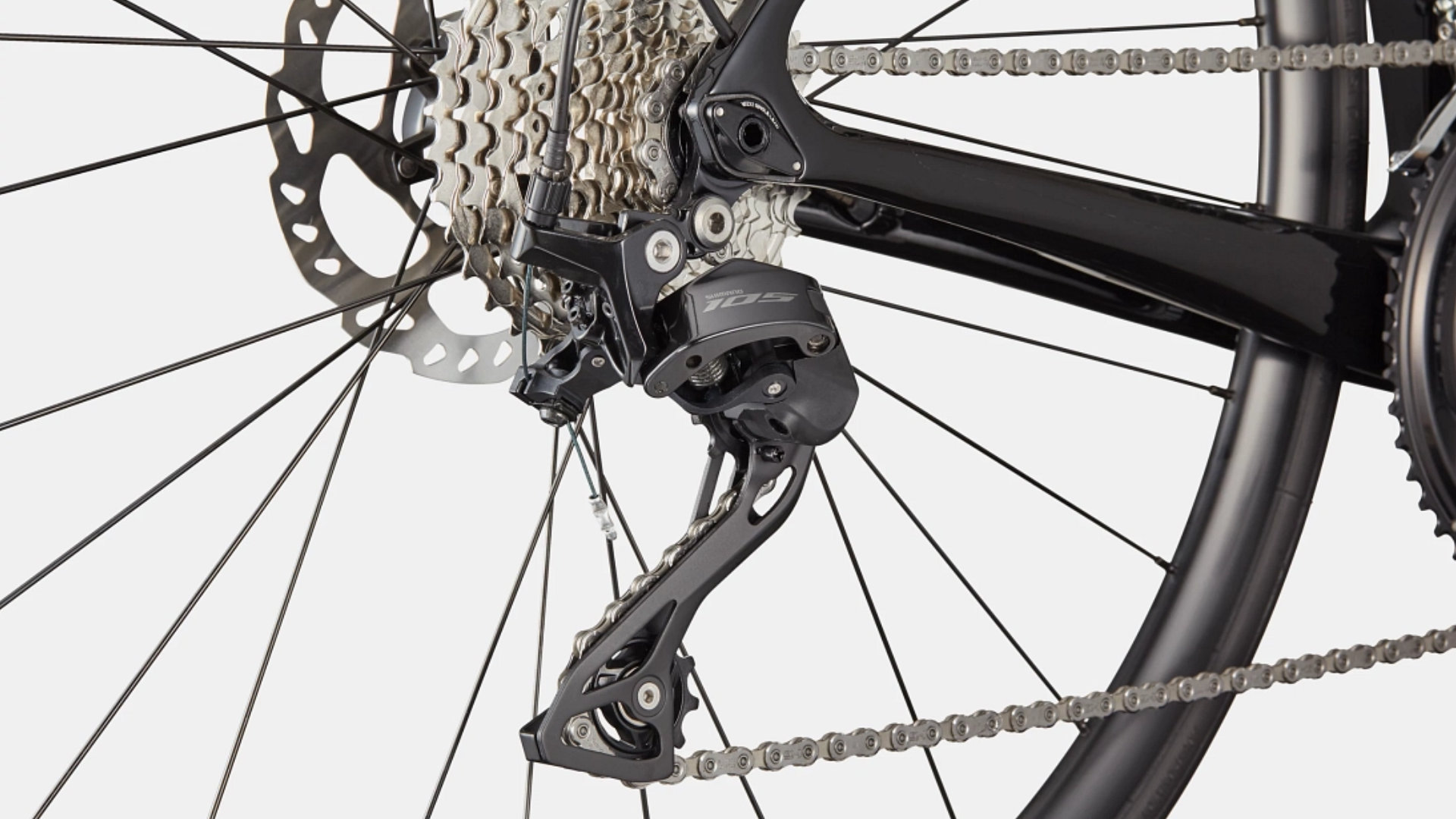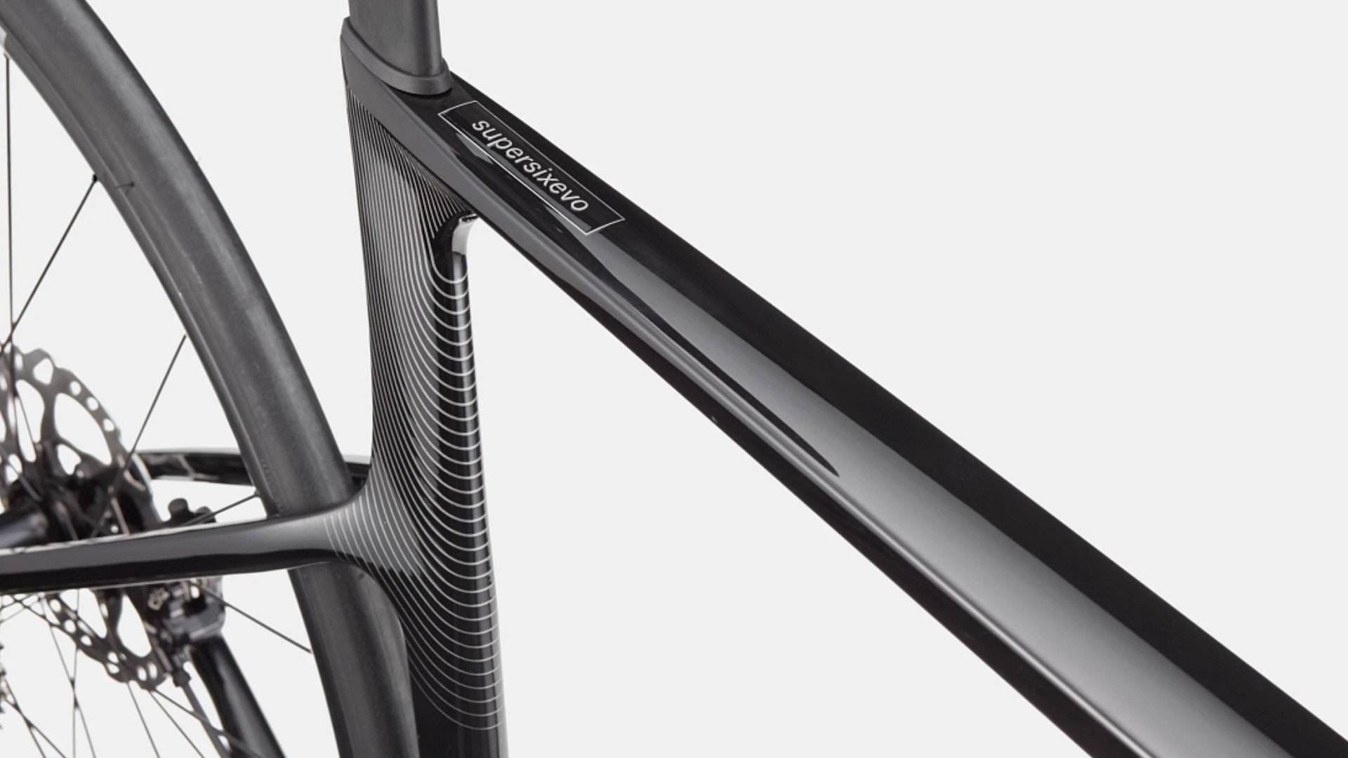 O quadro elegante e redutor de arrasto da nova SuperSix EVO poupa watts preciosos em cada pedalada. De facto, quando combinada com os nossos garrafões e cages Gripper aerodinâmicos, ela pode competir roda a roda com algumas das bicicletas puramente aerodinâmicas que existem. Para uma bicicleta de corrida de estrada, isso é enorme, e para uma bicicleta tão leve, isso é uma eficiência aerodinâmica impressionante.