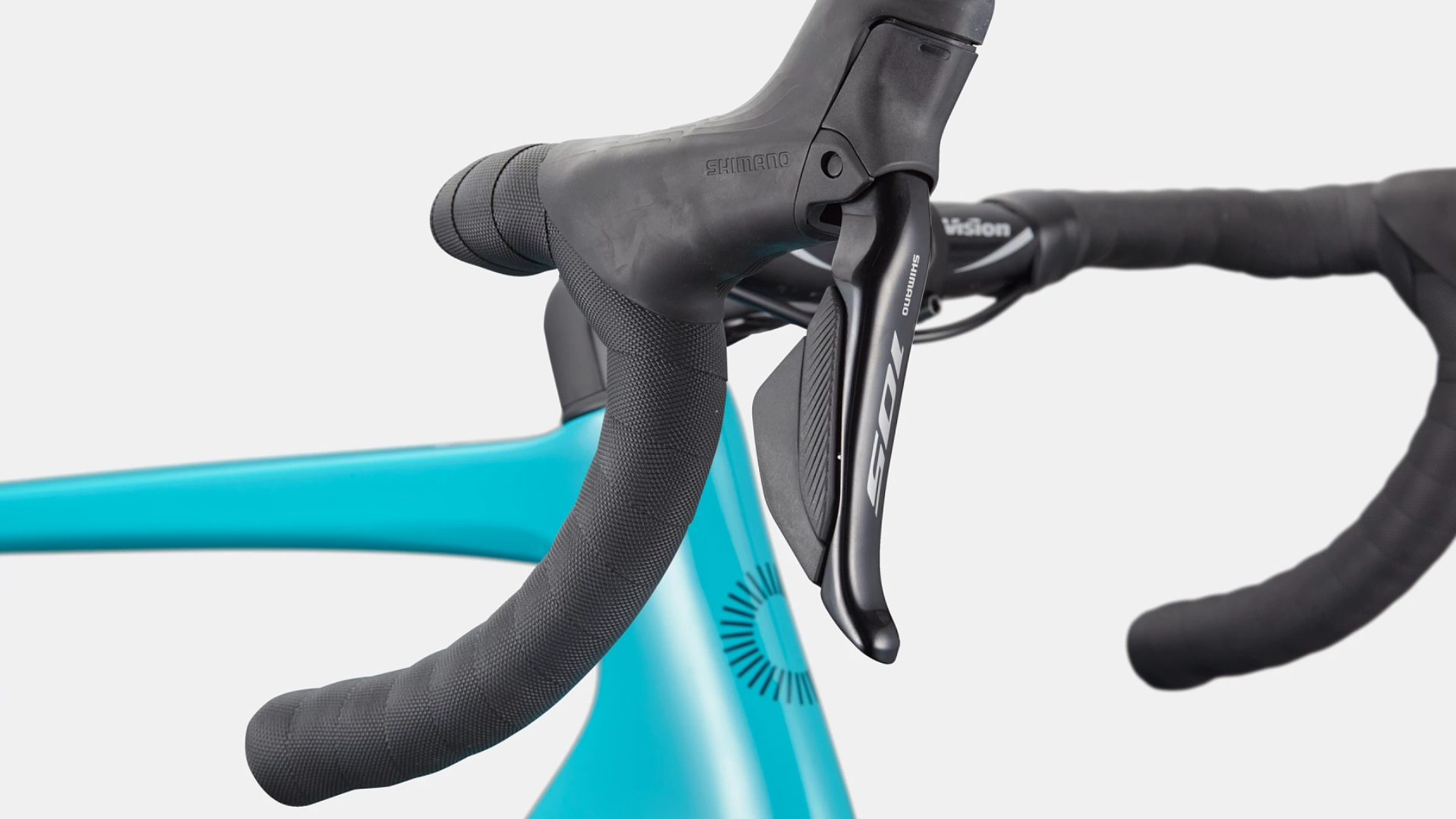 • Quadro em carbono SuperSix EVO leve e de baixo perfil – a combinação ideal de velocidade, manobrabilidade e conforto