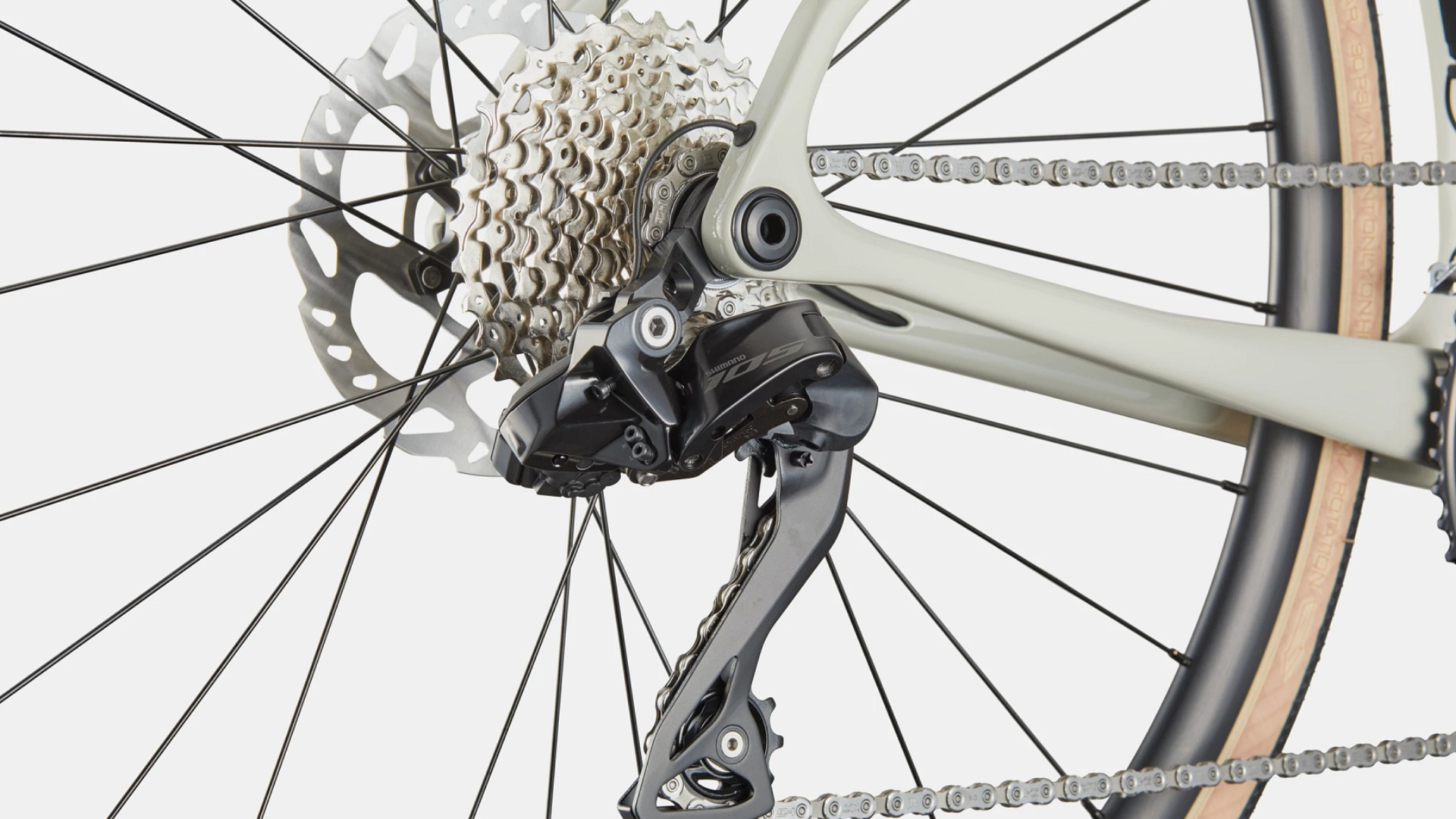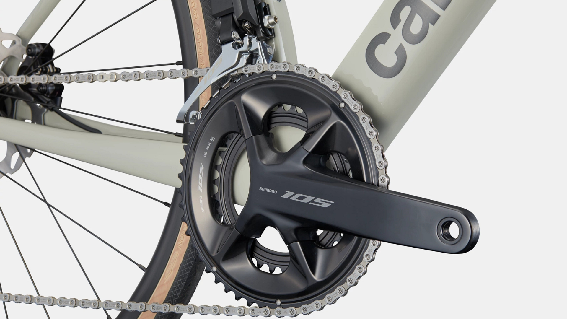 Desviador traseiro Shimano 105 Di2 7150. Desviador dianteiro Shimano 105 Di2 7150. Manípulos Shimano Ultegra Di2 R7170, eletrónicos, sem fios, 12-velocidades. Corrente Shimano 105 7100, 12-velocidades. Pedaleira Shimano 105 7100, BSA, 50/34. Cassete Shimano 105 7100, 11-34, 12-velocidades. Movimento pedaleiro Shimano BSA 68