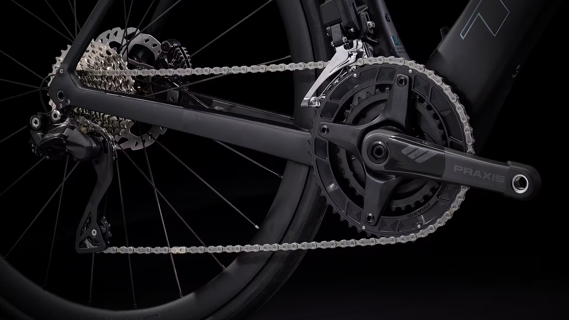 Um incrivelmente leve quadro em Carbono OCLV 800 Series com IsoSpeed traseiro. Um potente motor TQ harmonic pin ring de 50 Nm que fornece assistência até 25 km/h, uma bateria integrada de 360 Wh, um monitor inteligente LED integrado e os comandos discretos montados nas manetes para navegar entre os modos de assistência. Rodas Aeolus Pro 37V em Carbono OCLV, transmissão eletrónica sem fios Shimano 105 2×12 Di2, pedaleiro em carbono, um guiador Bontrager Pro Iso-Core que absorve as vibrações e um avanço RCS Pro que integra totalmente os cabos para conferir um aspeto elegante.
