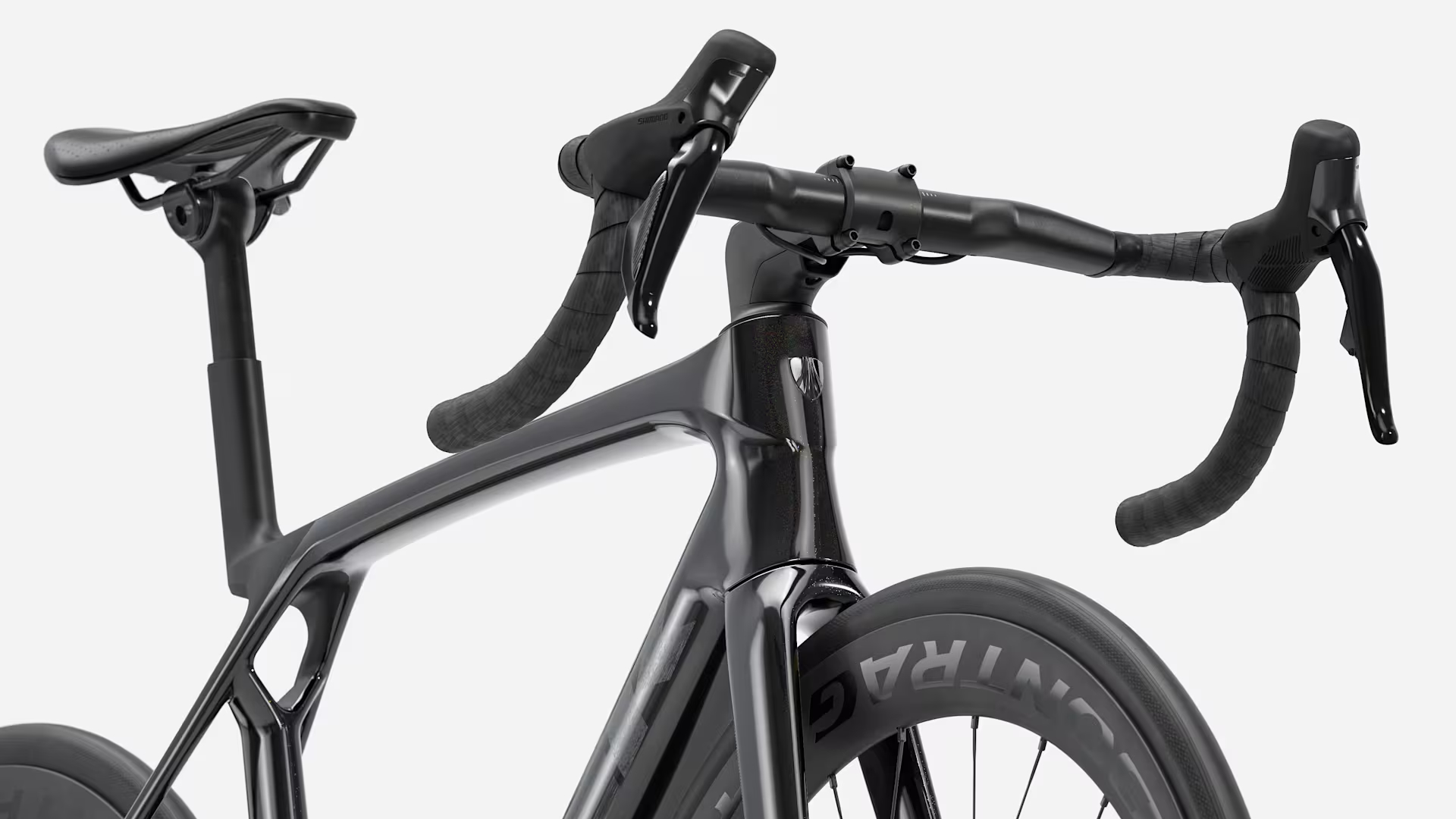 Carbono OCLV 500 Series, formato de tubos Full System Foil, tubo de espigão IsoFlow, sistema de caixa de direção RCS, passagem de cabos para sistema eletrónico ou mecânico, retentor de corrente aero removível, eixo pedaleiro T47, travões disco flat mount, ponteira de desviador universal, eixo passante.