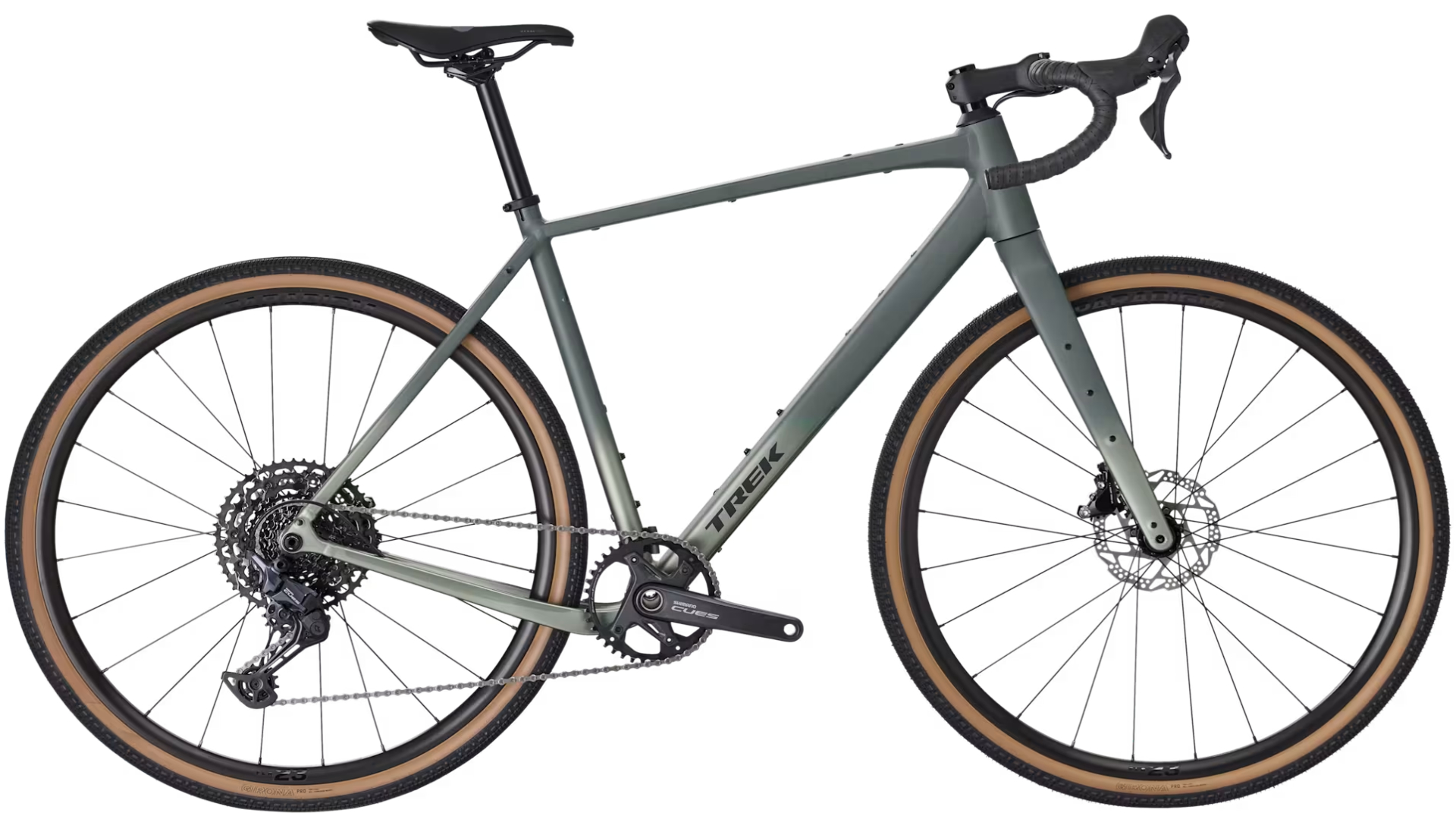 Quadro em Alumínio Alpha 300 Series com forqueta em carbono e espaço para pneus até 50 mm, transmissão Shimano CUES U8000 de 11 velocidades, travões de disco hidráulicos Shimano, rodas Bontrager Paradigm com pneus Bontrager Girona Pro Tubeless Ready, bem como imensos pontos de fixação para bolsas, porta-bagagens e equipamento.