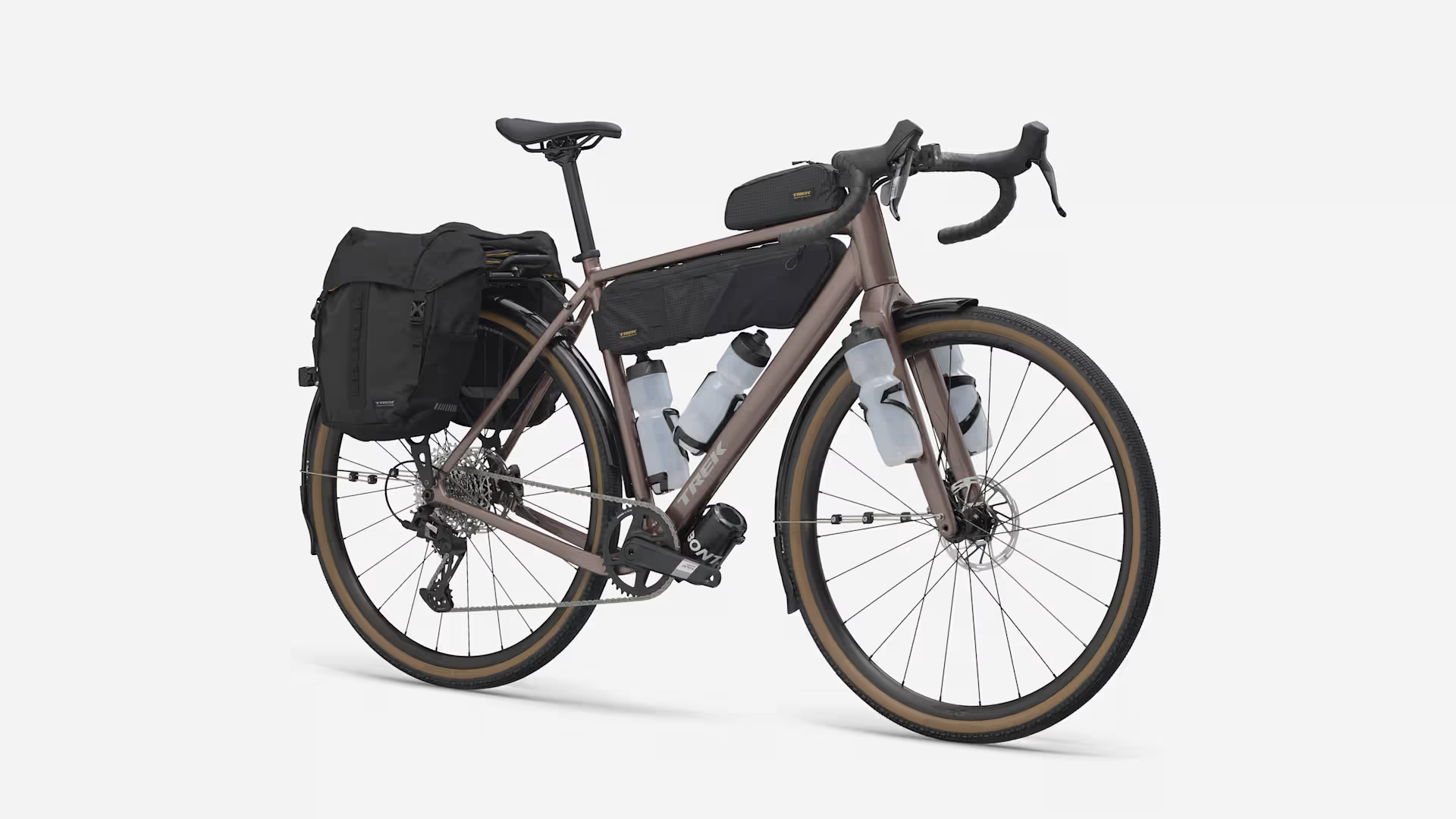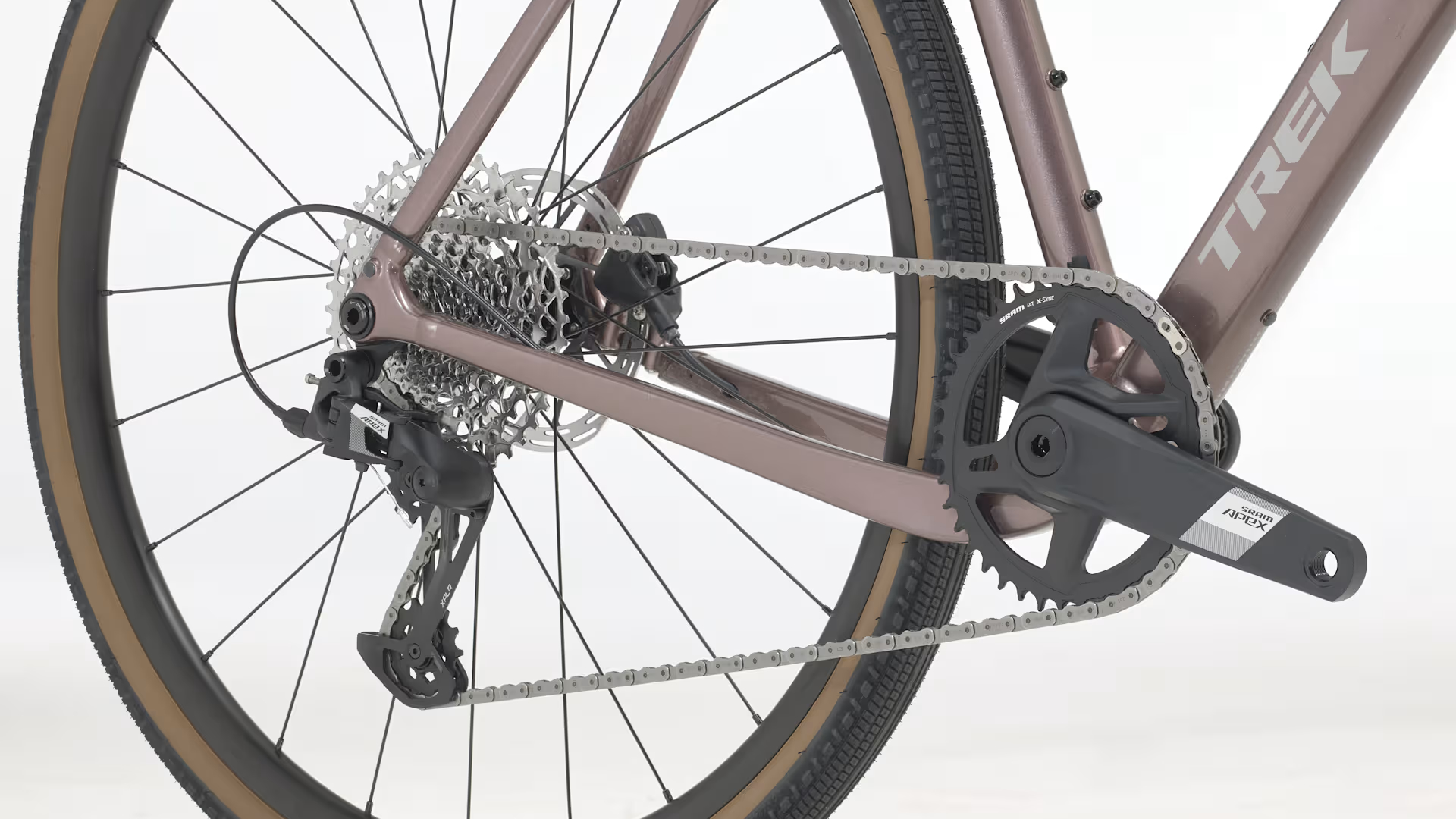 Quadro em Alumínio Alpha 300 Series com forqueta em carbono e espaço para pneus até 50 mm. Transmissão SRAM Apex XPLR de 12 velocidades, travões de disco hidráulicos, rodas Bontrager Paradigm com pneus tubeless ready Bontrager Girona Pro e imensos pontos de fixação para colocares bolsas, porta-bagagens e equipamento.