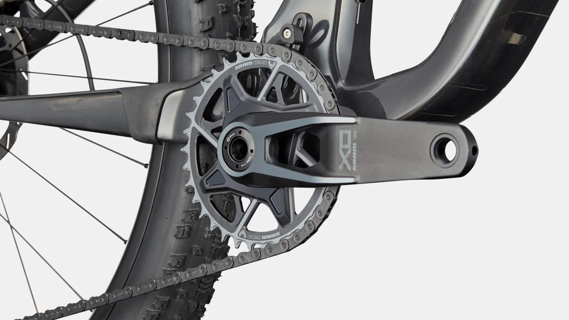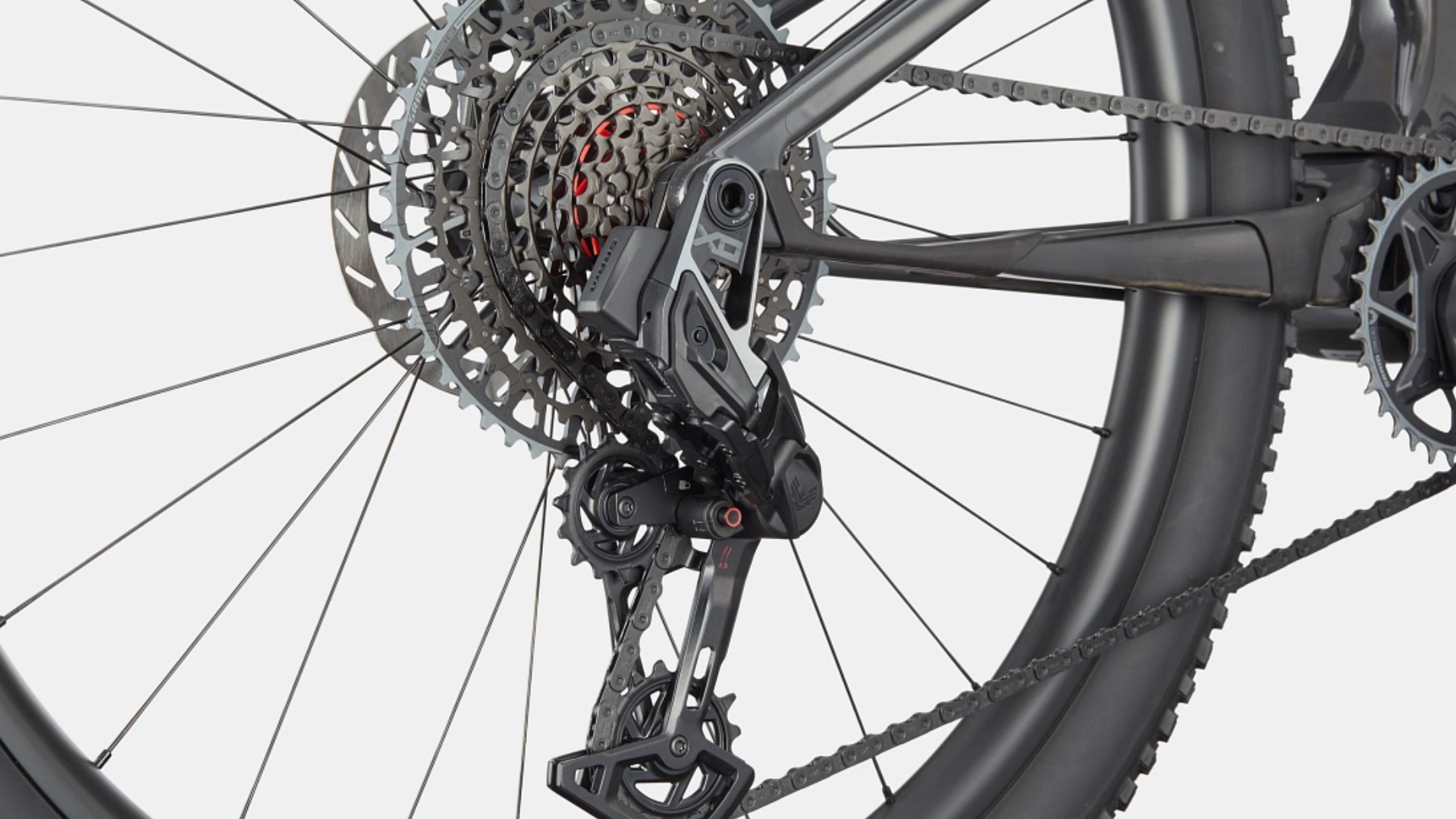 • Grupo SRAM XO Eagle AXS Transmission eletrónico sem fios de 12 velocidades, leve, preciso e resistente, com travões Level Silver Stealth