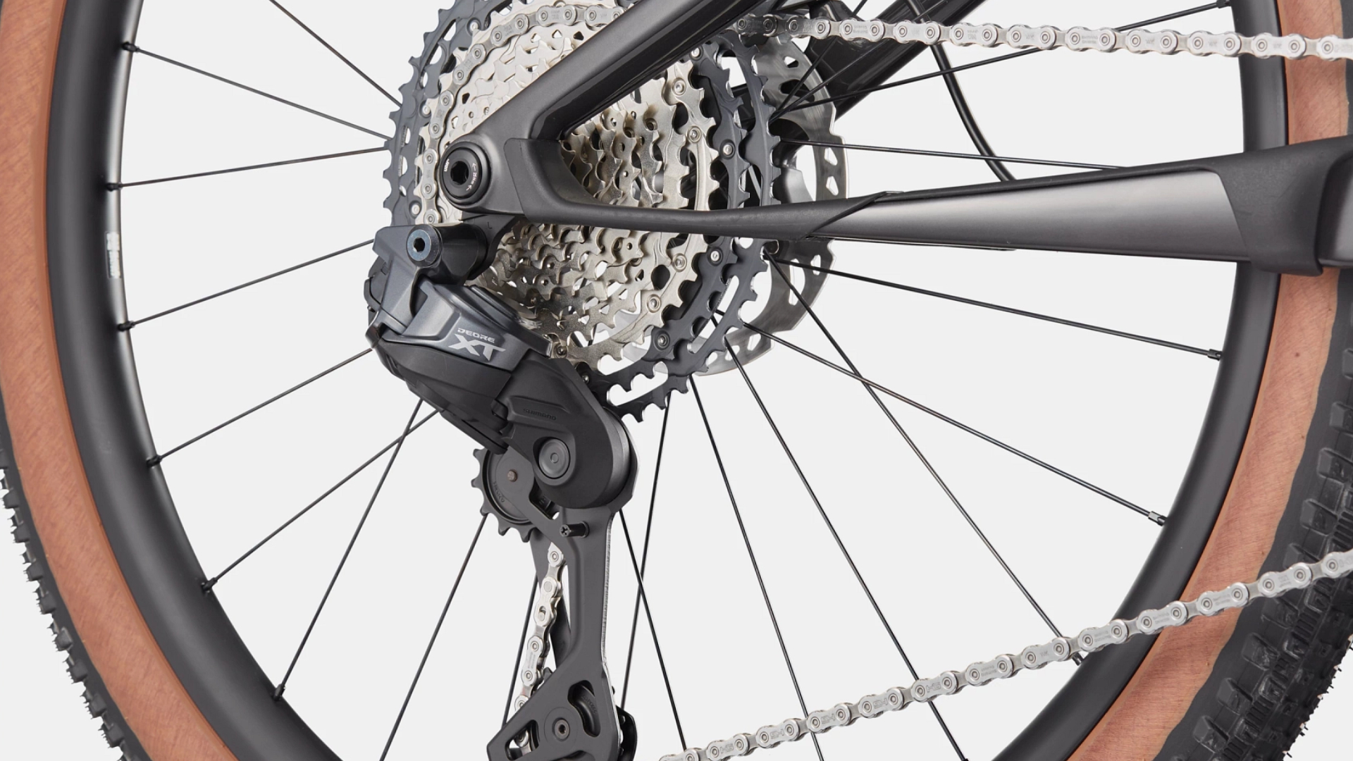 A velocidade começa com a geometria, e a Cannondale Scalpel tem o tiro certeiro. Tem um ângulo de tubo de cabeça folgado de 66,6º, um ângulo de tubo de selim mais acentuado de 75,5º e escoras que se tornam mais longas à medida que os quadros aumentam para manter o ciclista mais equilibrado entre as rodas. O resultado? Mais potência e tração nas subidas, um controlo mais preciso nas curvas e um nível totalmente novo de confiança à velocidade.