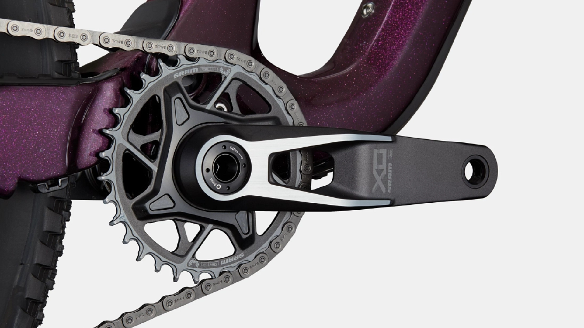 Desviador traseiro SRAM XO Eagle AXS, T-Type. Manípulos SRAM AXS T-Type Pod Controller. Corrente SRAM XO Eagle, T-Type, 12 velocidades. Pedaleira SRAM XO Eagle T-Type, X-Sync, 30D. Cassete SRAM XO Eagle T-Type, 10-52, 12 velocidades. Movimento pedaleiro SRAM DUB BSA MTB73 Wide