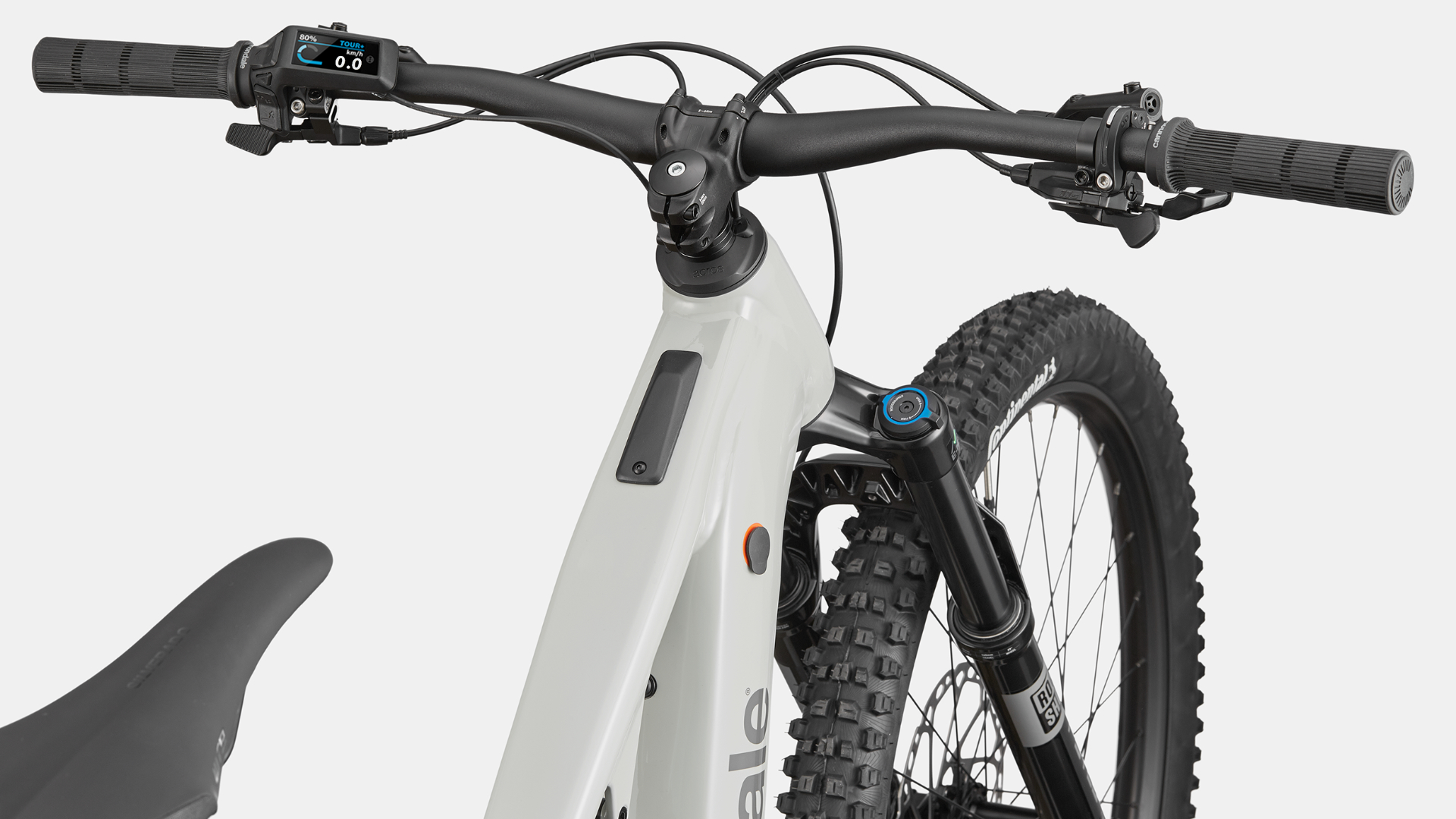 Guiador elevado Cannondale 3, alumínio 6061, 25mm elevação, 8° para trás, 4° para cima, 800mm. Avanço Cannondale 1, alumínio 6061, diâmetro 35mm, comprimento 40mm, 0°. Punhos Cannondale TaperRidge. Selim WTB Silverado Medium. Espigão telescópico Cannondale DownLow Dropper, encaminhamento de cabos interno, 34,9mm largura, 150mm (S), 170mm (M), 200mm (L), 230mm (XL)