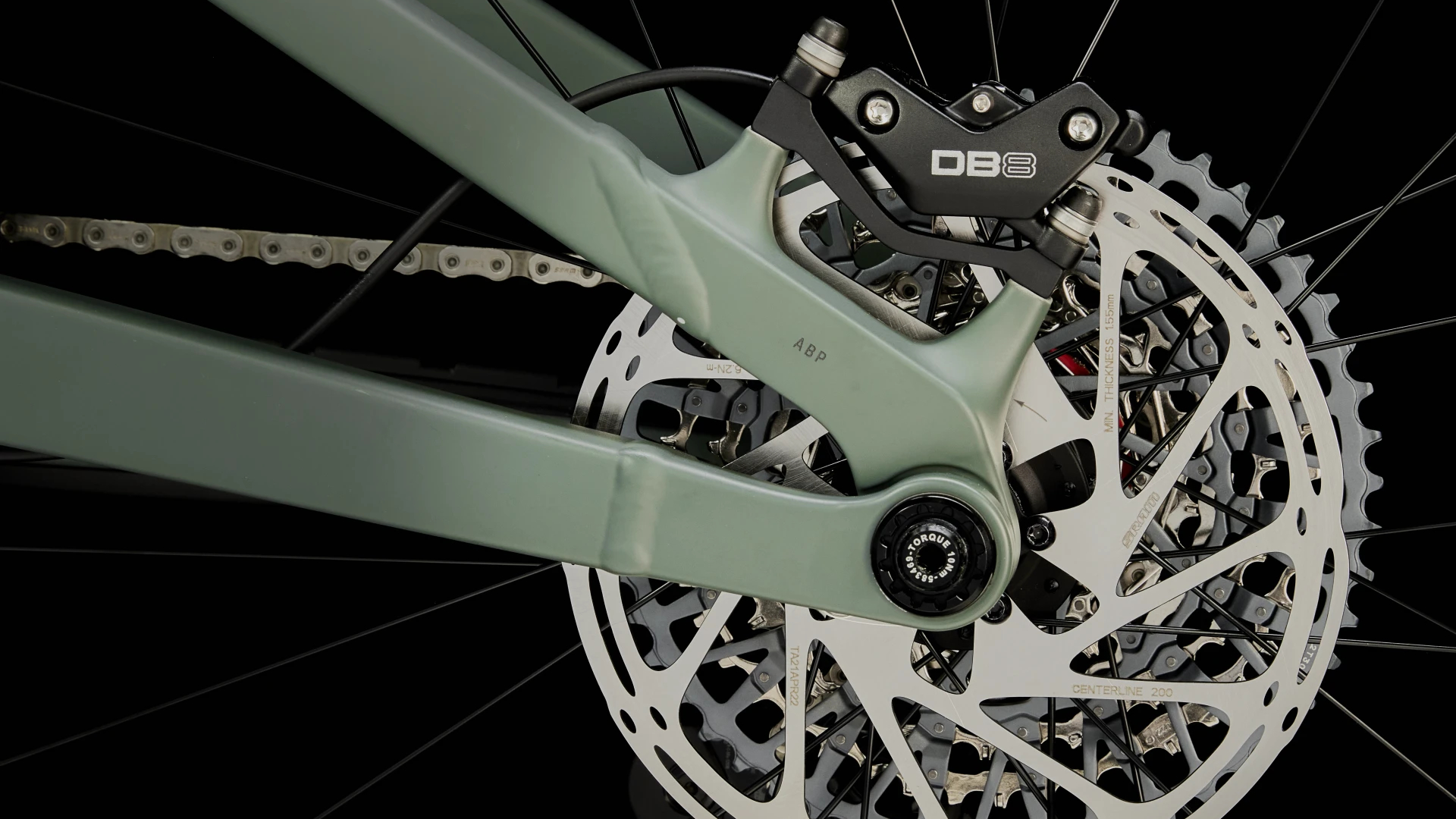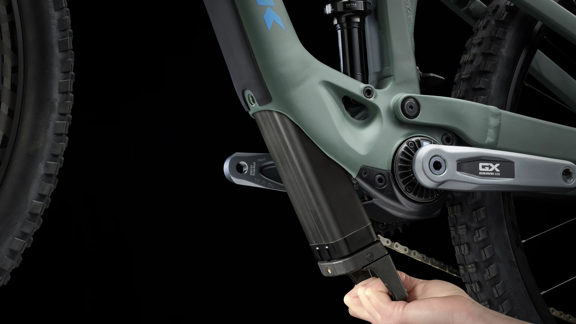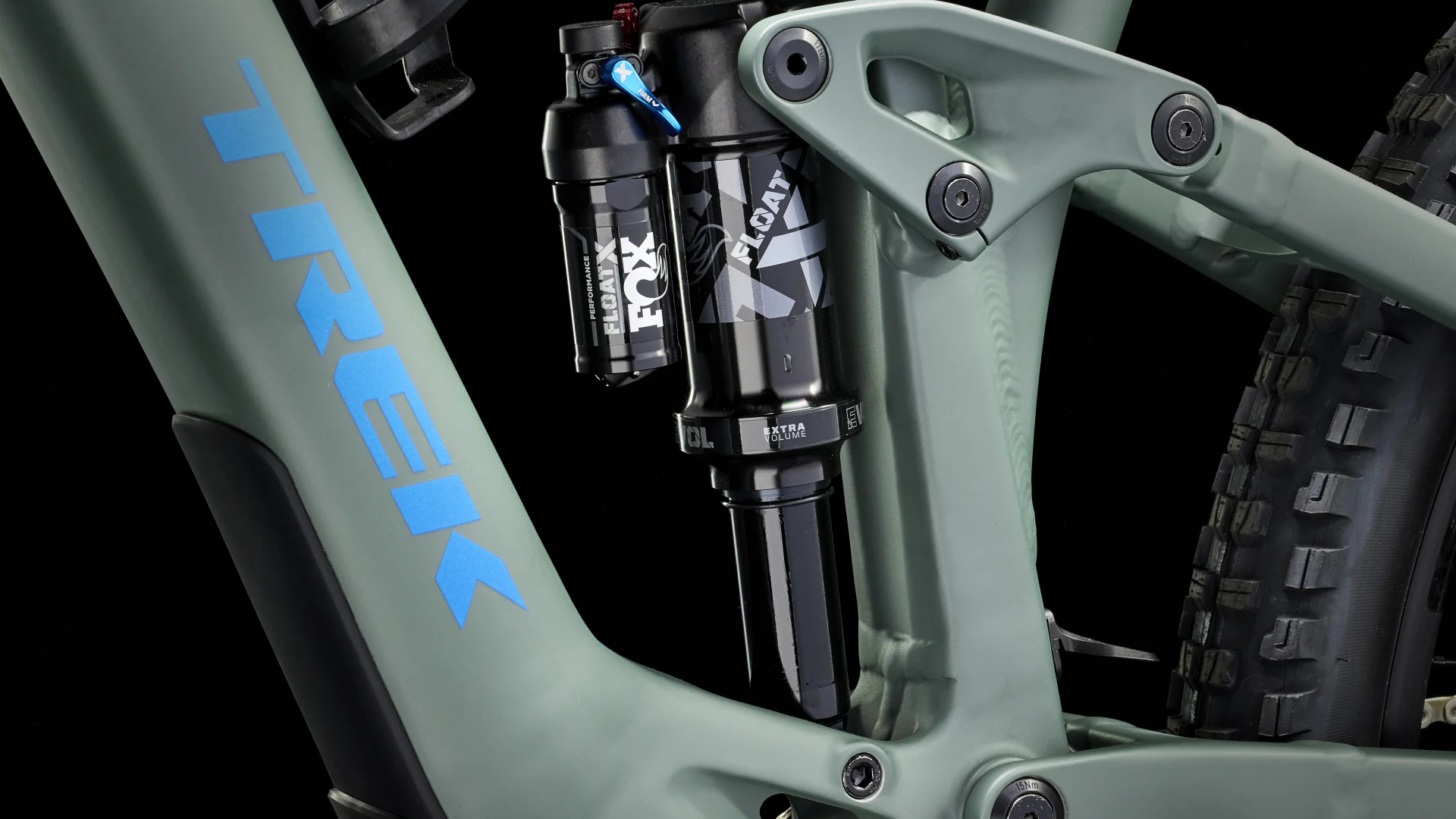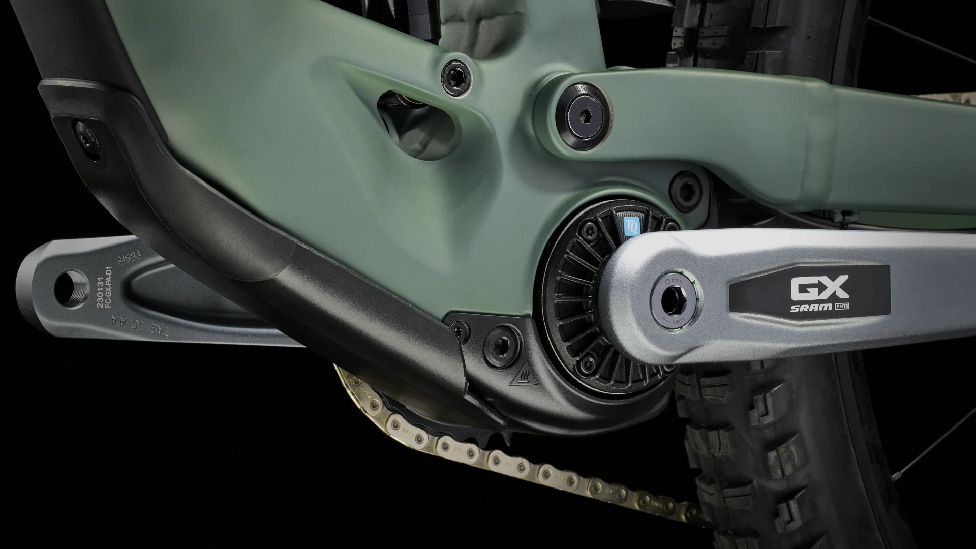 Um quadro em Alumínio Alpha Platinum com o motor TQ HPR50 harmonic pin ring, uma bateria totalmente integrada de 360 Wh e uma porta de carregamento inteligente. Um monitor LED integrado e um comando do guiador que são fáceis de utilizar em andamento. 150 mm de suspensão dianteira FOX Rhythm 36 com mola a ar Float EVOL e amortecimento GRIP e uma suspensão traseira FOX Performance Float X de 140 mm. Mais, rodas largas Tubeless Ready Bontrager Line Comp 30, uma transmissão sem fios SRAM GX AXS de 12 velocidades, travões de disco hidráulicos e um espigão telescópico.