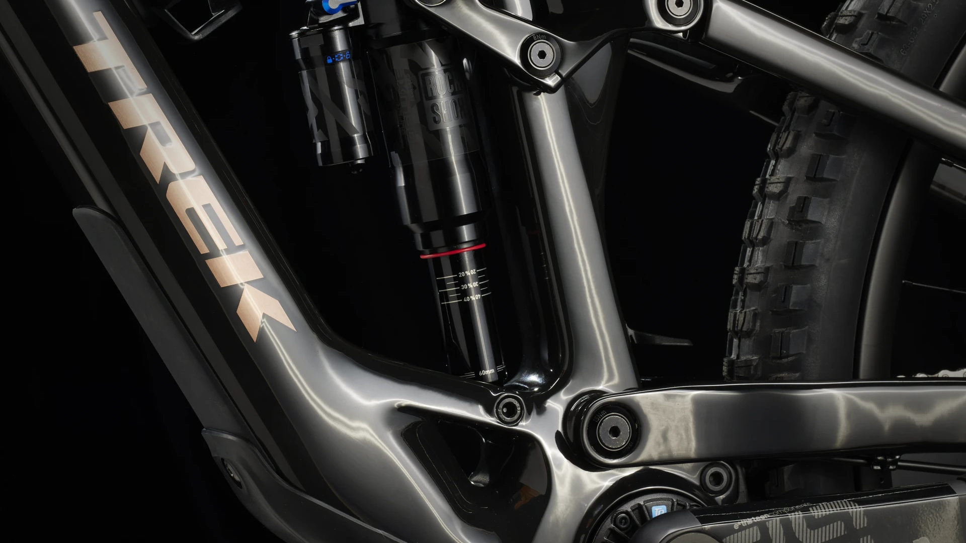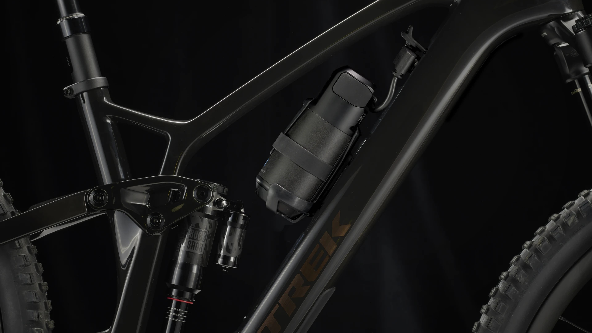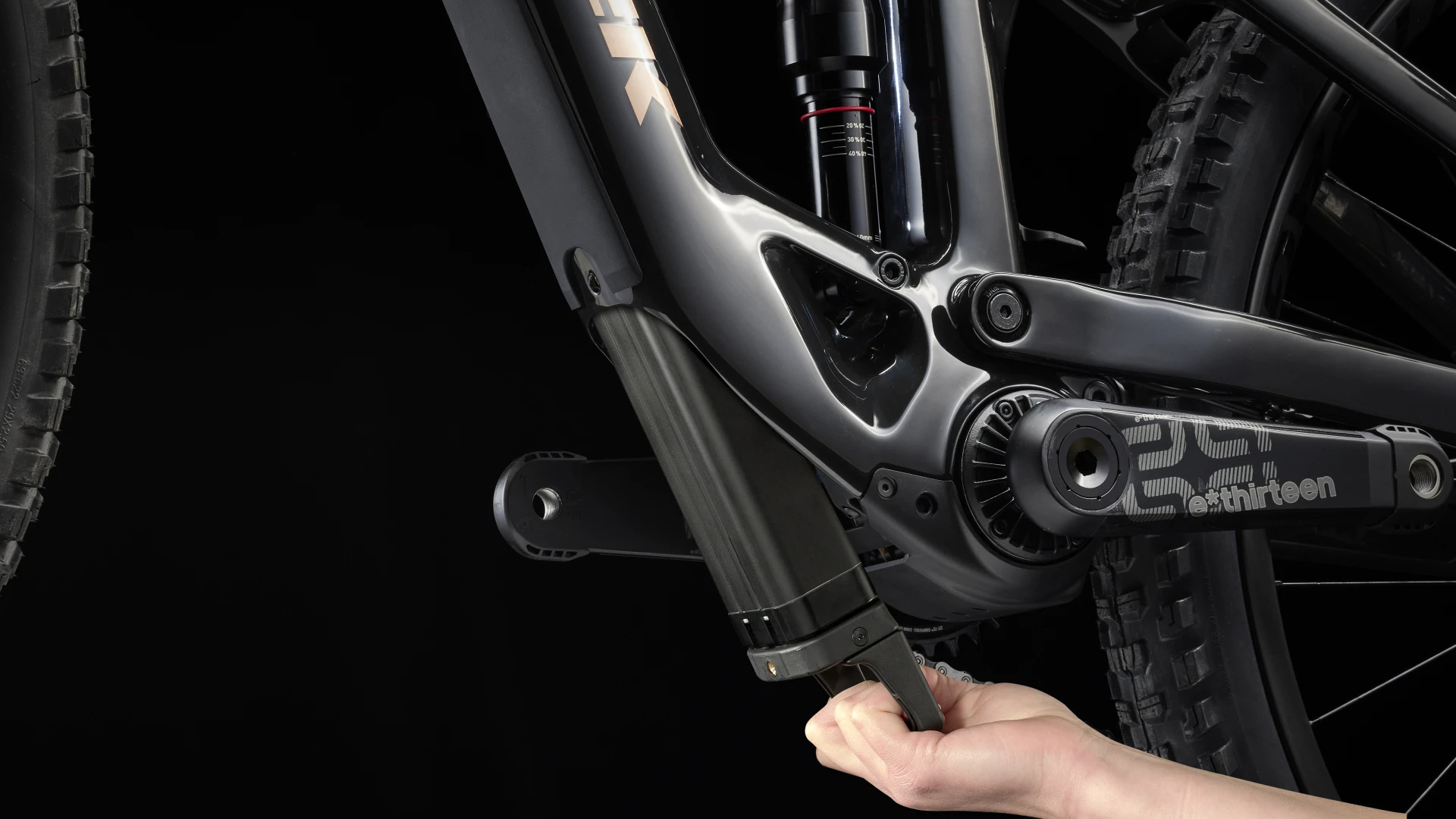 Um quadro em Carbono OCLV Mountain com uma bateria facilmente removível de 360 Wh, e uma transmissão TQ harmonic pin ring com uma porta de carregamento inteligente, monitor LED integrado e um discreto comando no guiador. E ainda, uma suspensão RockShox Lyrik Select+ de 150 mm com mola DebonAir, amortecimento Charger 2.1 RC e suspensão traseira RockShox Super Deluxe Select+ de 140 mm. E não te esqueças do desempenho confiável da engrenagem suave de mudanças da transmissão Shimano XT.