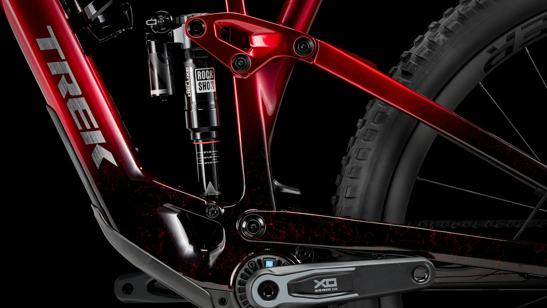 Um quadro em Carbono OCLV Mountain com uma bateria totalmente integrada de 360 Wh, uma transmissão TQ harmonic pin ring com uma porta de carregamento inteligente, monitor LED integrado e um discreto comando no guiador. Suspensão RockShox Lyrik Ultimate de 150 mm, mola DebonAir, e amortecimento Charger 3 RC2 e 140 mm de suspensão traseira com um amortecedor RockShox Super Deluxe Ultimate. Além disso, dispõe de rodas rígidas em carbono preparadas para tubeless, TyreWiz e da transmissão eletrónica sem fios direct-mount SRAM X0 AXS robusta e com engrenagem precisa de mudanças mesmo sob pressão.