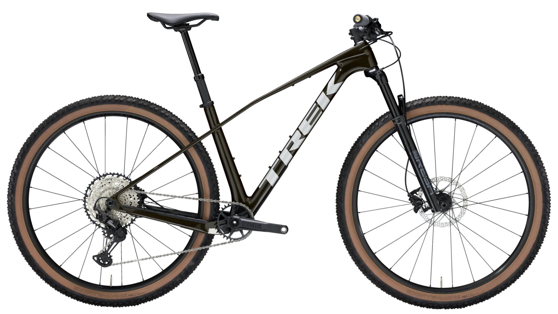 An OCLV Mountain carbon frame with IsoBow technology to smooth out the trails. RockShox Reba RL front suspension with 120 mm of travel, Solo Air spring, Motion Control shock absorber and remote lockout. A selected combination of Shimano SLX and XT 12-speed components, hydraulic brakes, Bontrager Line telescopic seat post and Bontrager Kovee Comp 29” tubeless wheels.