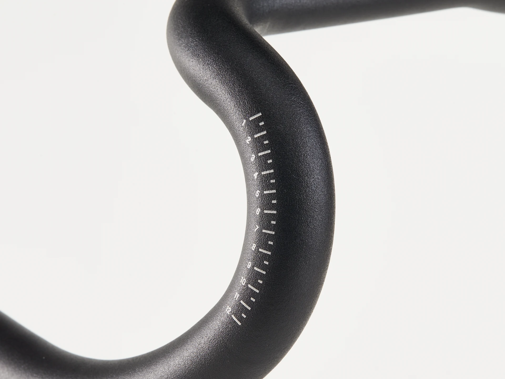 Um guiador de estrada em alumínio, com formato versátil e compatível com a gama de ciclismo de estrada.