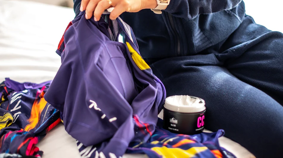 Antes de pedalar, aplica generosamente o creme nas zonas da tua pele que possam ser um ponto de contacto para a fricção.