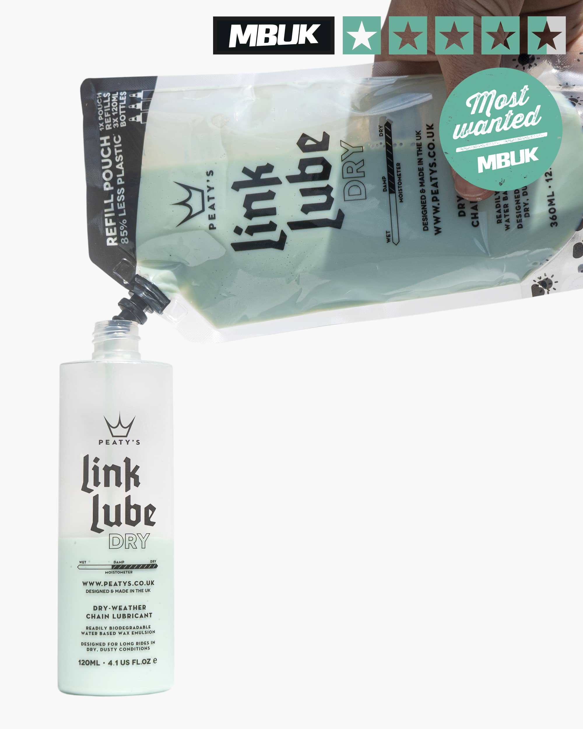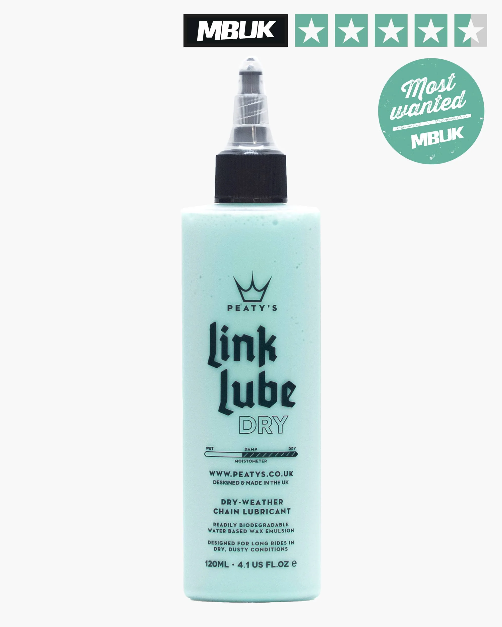 • Linklube todas as condições meteorológicas é o lubrificante de corrente único para a maioria das condições climáticas. Embora o fluido transportador de base tenha propriedades de rápida penetração e limpeza de corrente, ele nunca ficará totalmente seco ao toque. Isso pode levar à atração indesejada de pó nas condições mais secas e empoeiradas, portanto, é necessário um lubrificante seco mais personalizado.