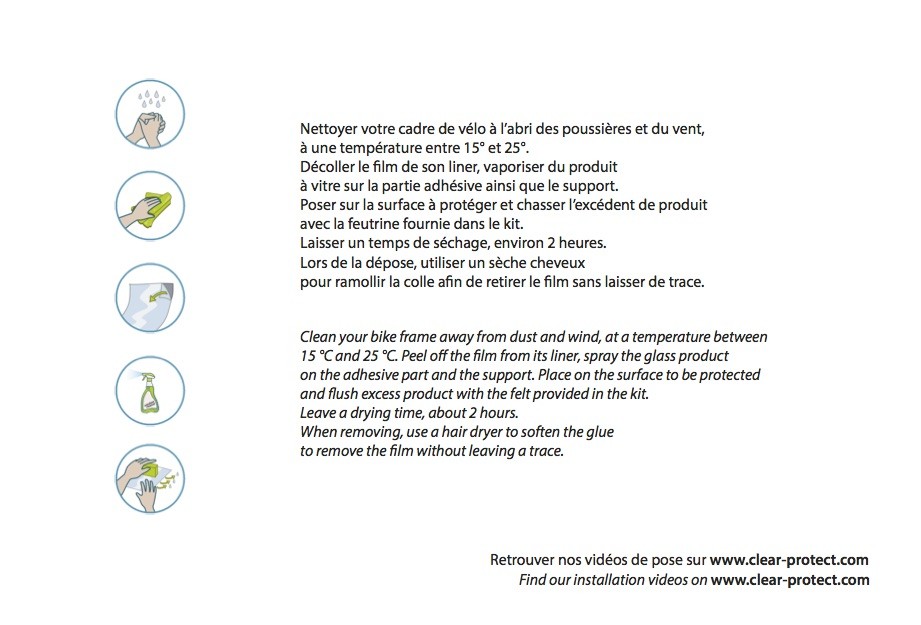 Clear Protect matte para oferecer a melhor proteção e um acabamento soberbo. Os kits de filme pré-cortado em acabamento fosco, são projetados para proteger diferentes partes do quadro da bicicleta, como o tubo superior, o tubo inferior, as escoras e as passagens das bainhas. Possui excelente resistência ao longo do tempo, não amarela e é ideal para pintura fosca em quadros de alumínio ou carbono.